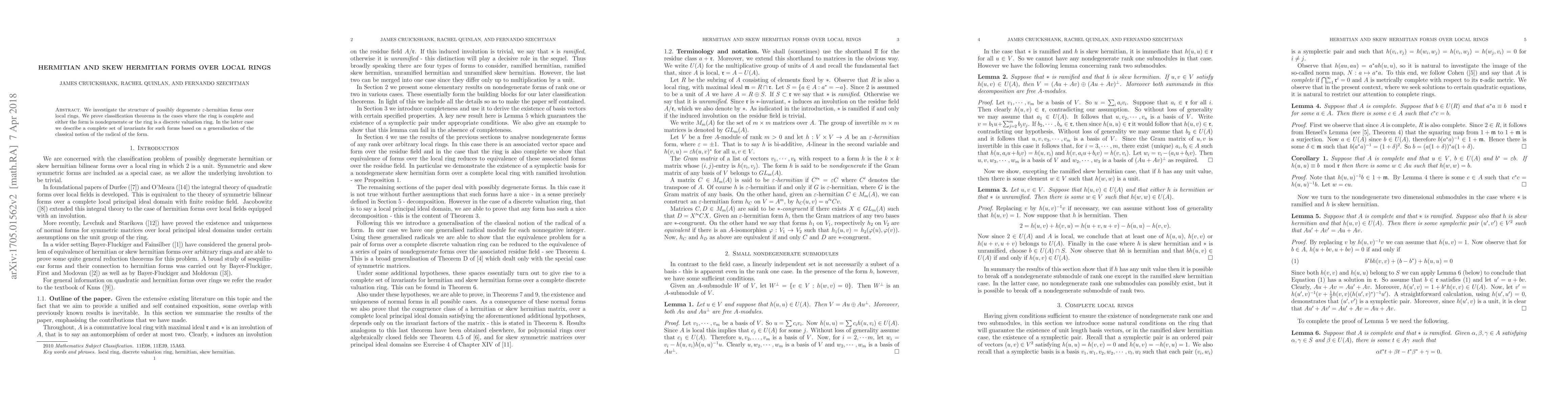 Summary: This paper investigates the classification of degenerate hermitian and skew hermitian bilinear forms over local rings where 2 is invertible, aiming to understand their structural properties and potential degeneracies.