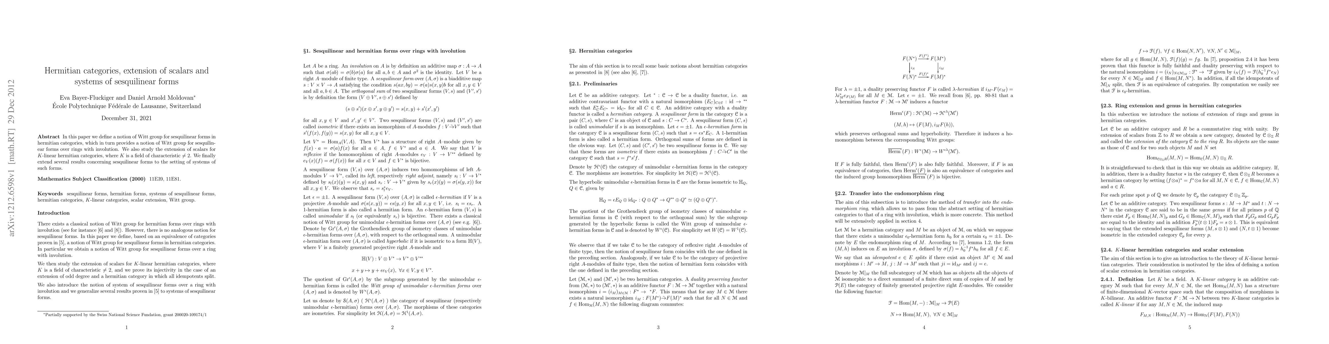 This paper introduces a Witt group for sesquilinear forms in hermitian categories and extends this notion to rings with involution. It also examines scalar extensions in K-linear hermitian categories and broadens results on sesquilinear forms to systems of such forms.