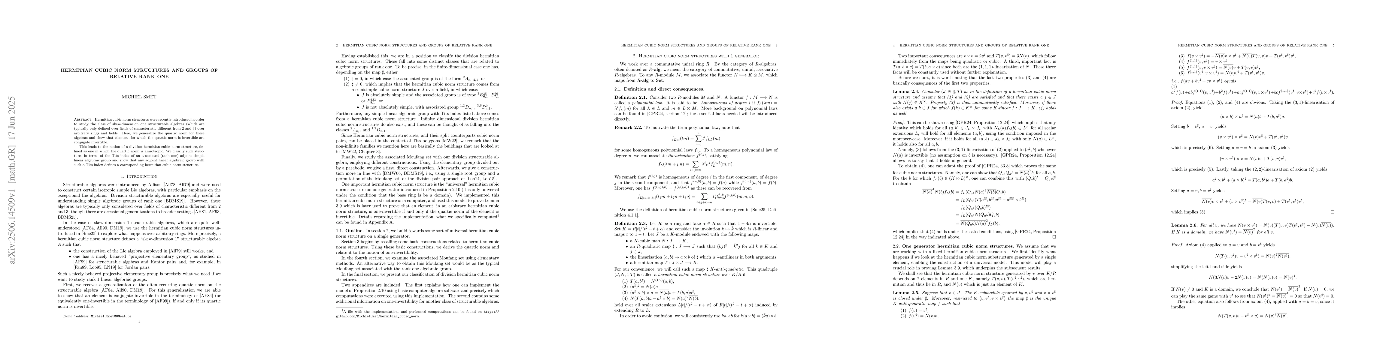 A combination of theoretical analysis and computational verification was used to investigate hermitian cubic norm structures.