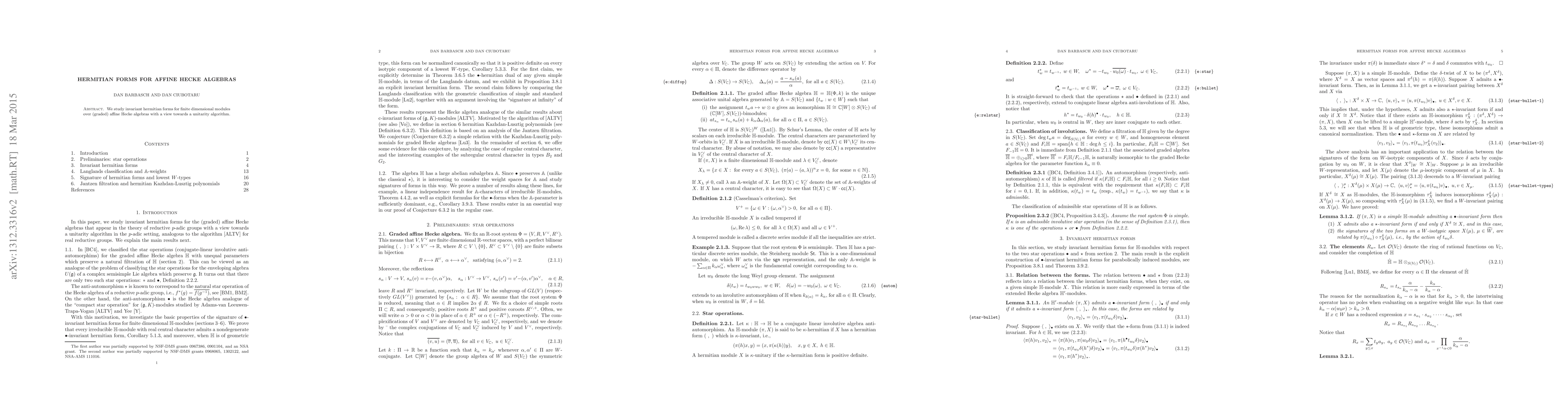 This paper investigates star operations in Iwahori-Hecke algebras and explores invariant Hermitian forms for modules over affine Hecke algebras, aiming to develop a unitarity algorithm.