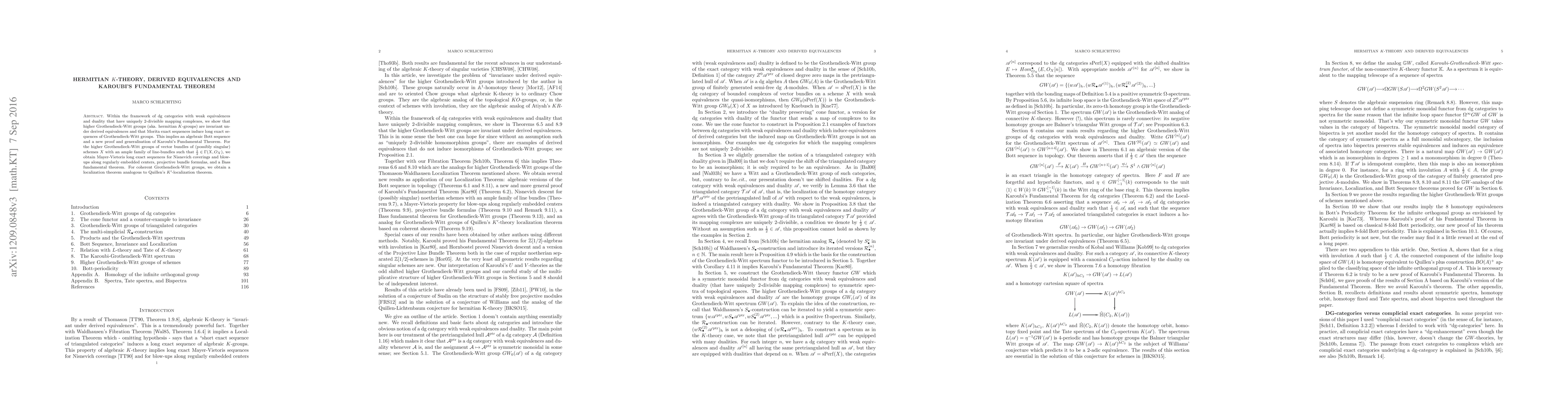 Within the framework of dg categories with weak equivalences and duality that have uniquely 2-divisible mapping complexes, we show that higher Grothendieck-Witt groups (aka. hermitian K-groups) are invariant under derived equivalences and that Morita exact sequences induce long exact sequences of Grothendieck-Witt groups. This implies an algebraic Bott sequence and a new proof and generalization of Karoubi's Fundamental Theorem. For the higher Grothendieck-Witt groups of vector bundles of (possibly singular) schemes with an ample family of line-bundles such that 2 is invertible in the ring of regular functions, we obtain Mayer-Vietoris long exact sequences for Nisnevich coverings and blow-ups along regularly embedded centers, projective bundle formulas, and a Bass fundamental theorem. For coherent Grothendieck-Witt groups, we obtain a localization theorem analogous to Quillen's K'-localization theorem.