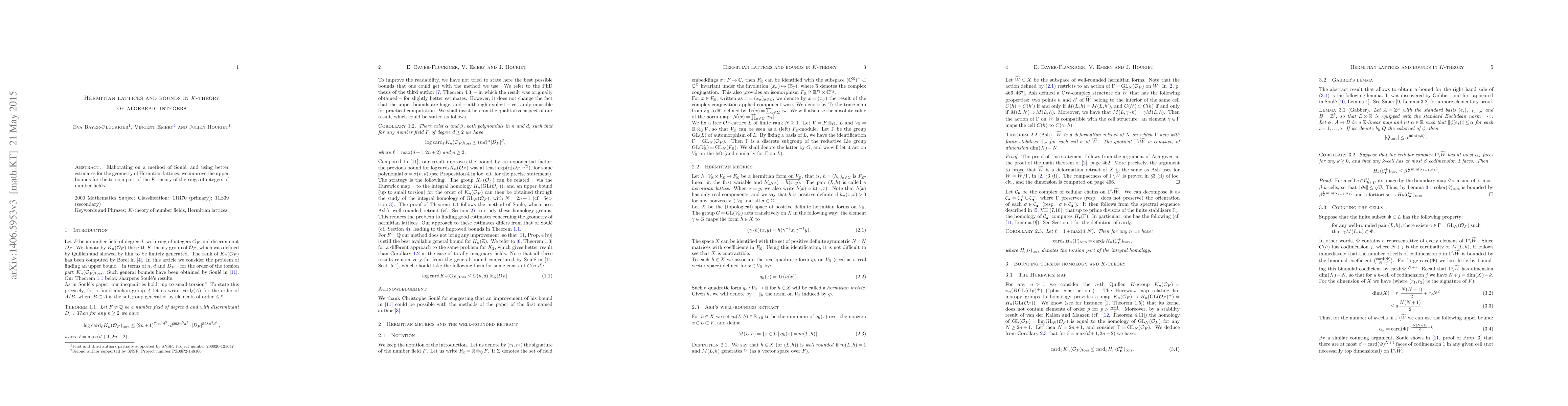 This paper refines Soulé's method and leverages improved estimates on hermitian lattices to enhance upper bounds for the torsion in the K-theory of algebraic integers within number fields. The work provides tighter control over the torsion components in the rings of integers of number fields.