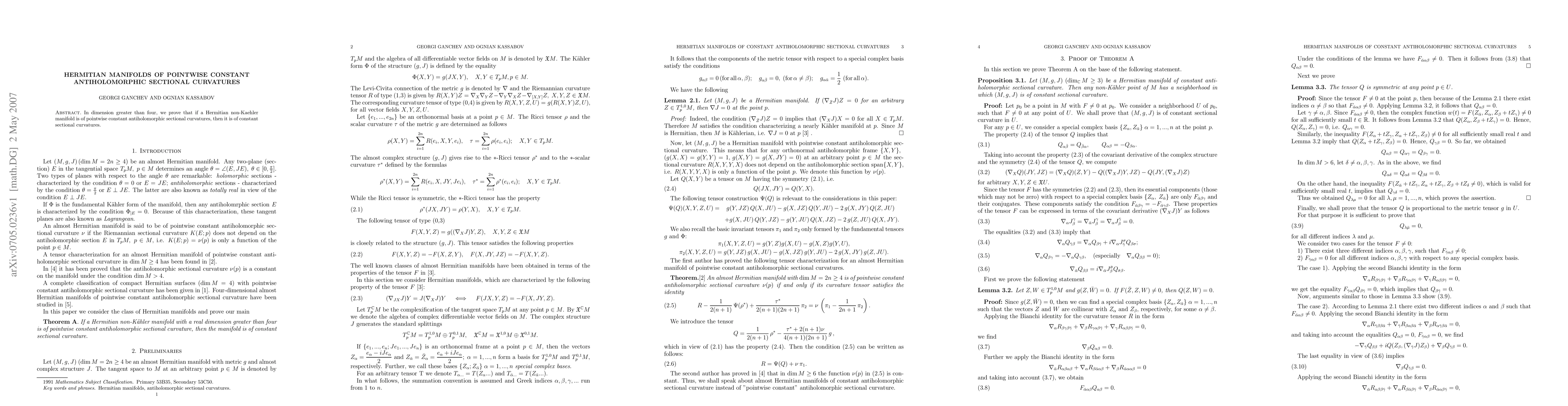In dimension greater than four, we prove that if a Hermitian non-Kaehler manifold is of pointwise constant antiholomorphic sectional curvatures, then it is of constant sectional curvatures.