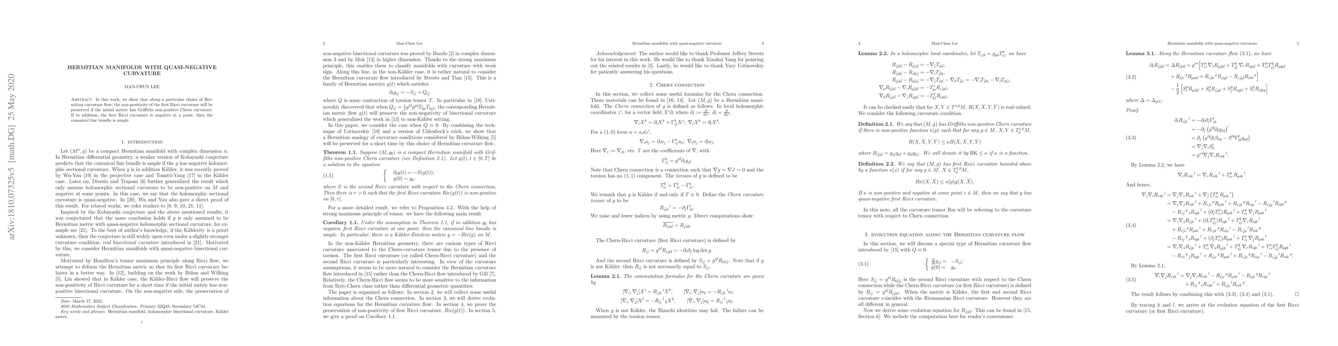 This paper demonstrates that a specific Hermitian curvature flow preserves non-positivity of Chern-Ricci curvature when starting from a metric with non-positive bisectional curvature. It also proves that the canonical line bundle of such compact Hermitian manifolds is ample.