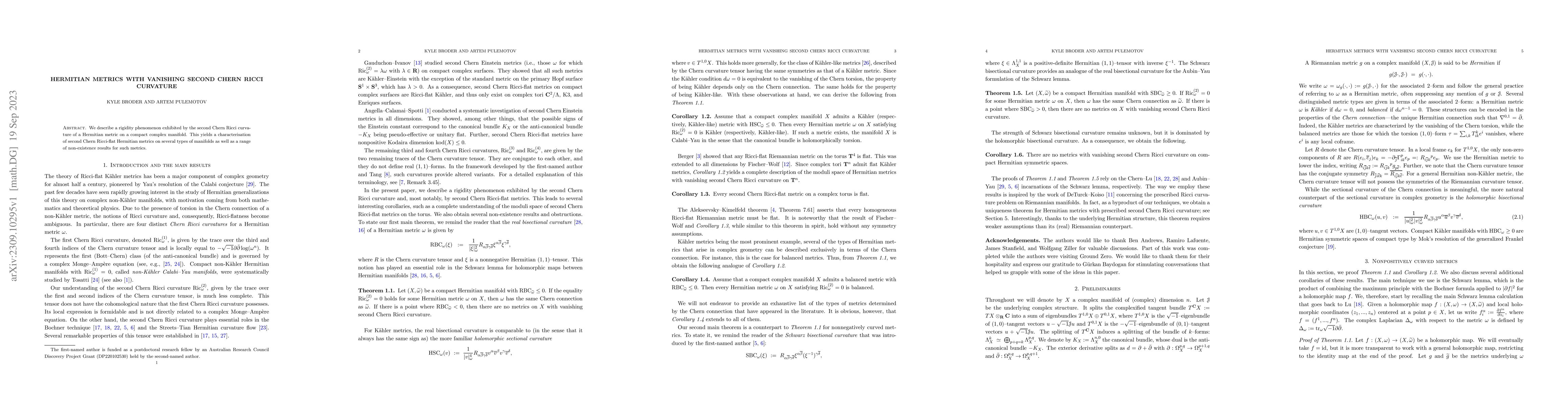 The paper explores the rigidity of Hermitian metrics on compact complex manifolds where the second Chern Ricci curvature vanishes, providing a characterization of Ricci-flat metrics and establishing non-existence results for such metrics across various manifold types.