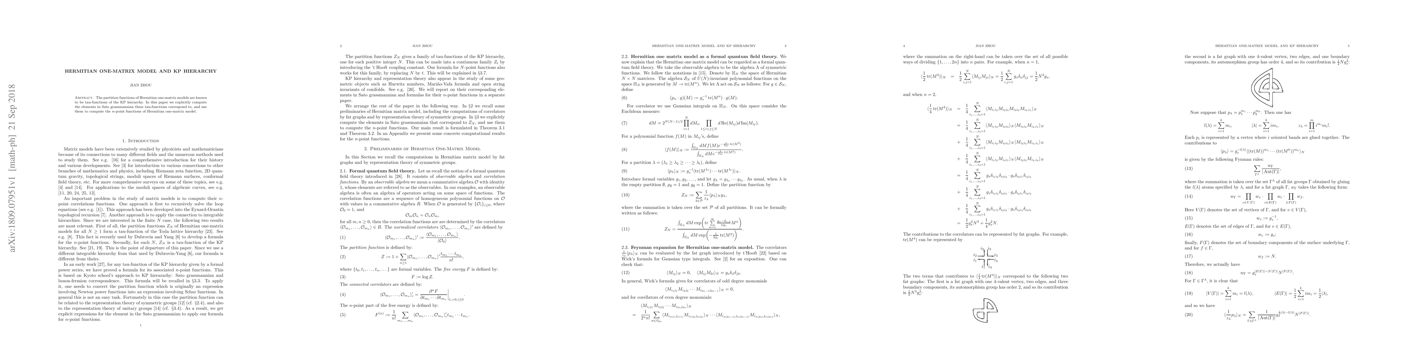 The paper employs techniques from matrix models and the KP hierarchy, explicitly computing elements in the Sato Grassmannian corresponding to tau-functions of the KP hierarchy to derive partition functions of Hermitian one-matrix models and subsequently compute n-point functions.