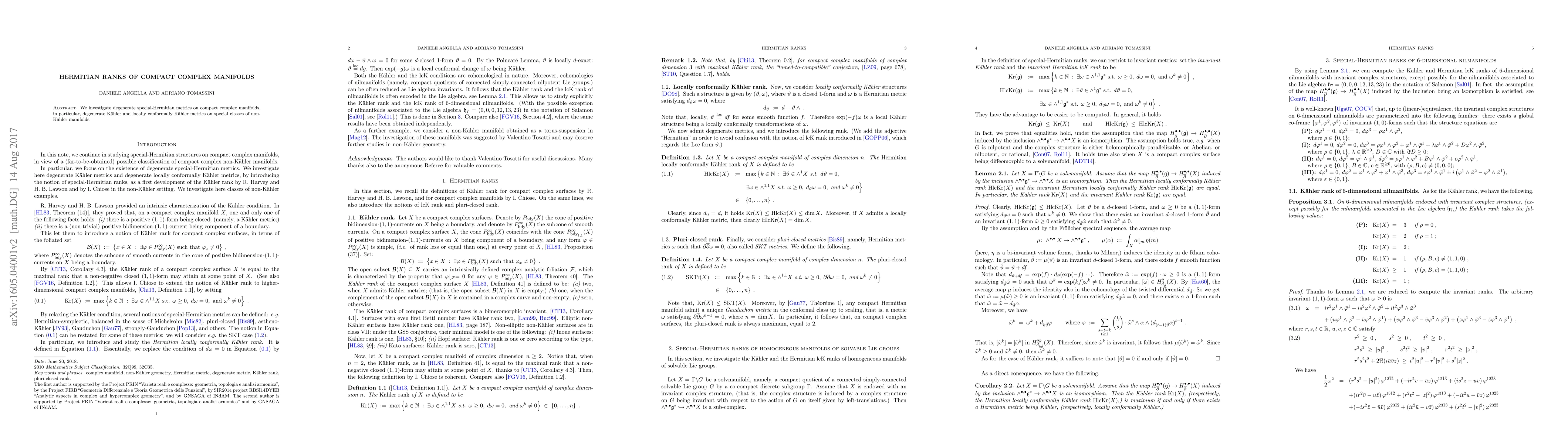Summary: This paper explores degenerate special-Hermitian metrics on compact complex manifolds, focusing on degenerate Kähler and locally conformally Kähler metrics within specific non-Kähler classes. The study aims to understand the Hermitian ranks in these unique settings.