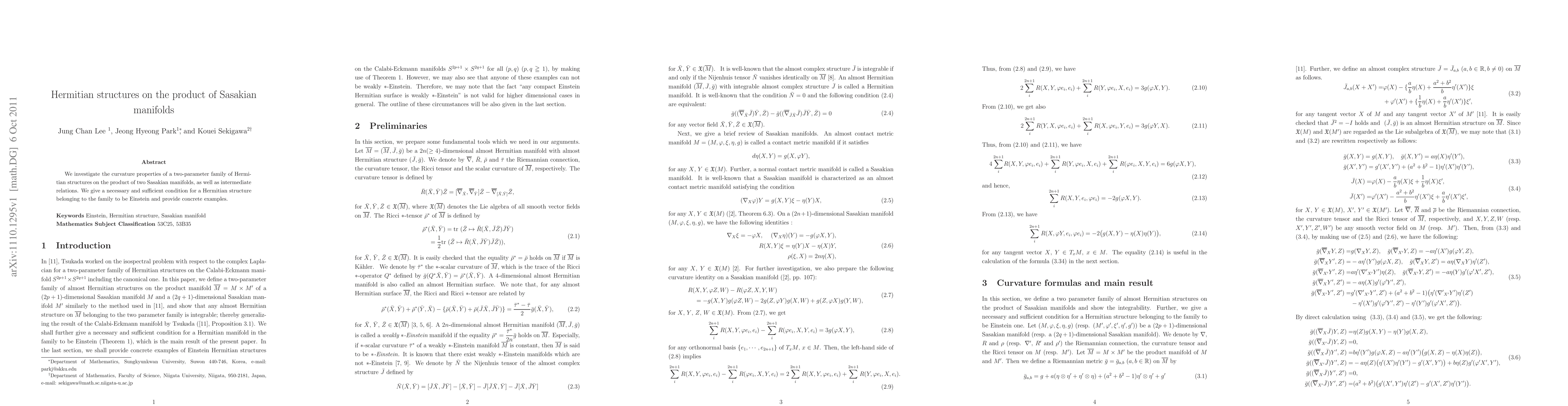 Researchers investigate Hermitian structures on the product of two Sasakian manifolds, providing a condition for Einstein structures and concrete examples.