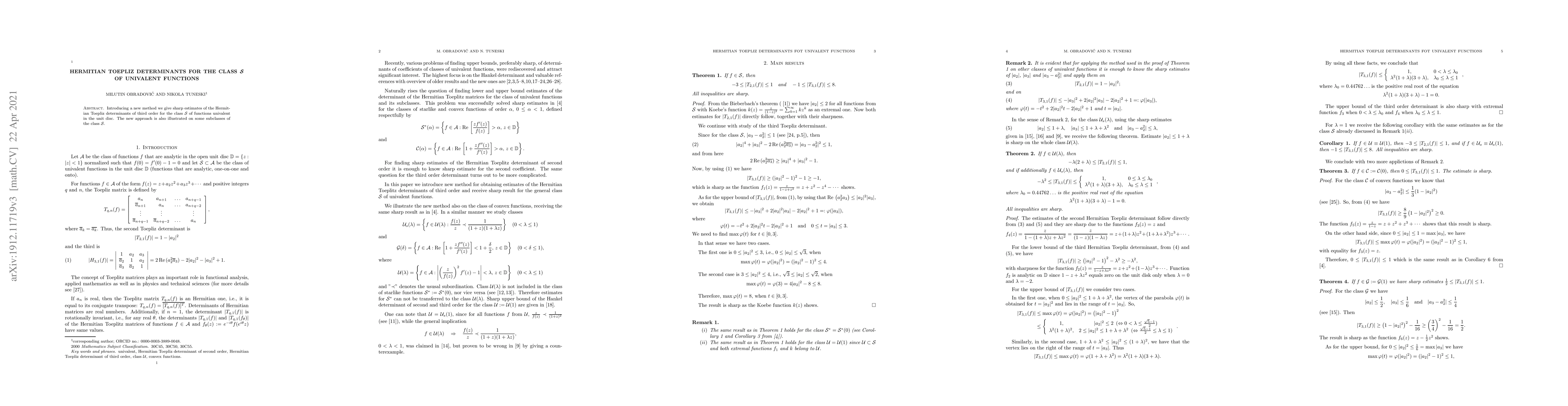 This paper introduces a novel method to provide sharp estimates of third-order Hermitian Toeplitz determinants for univalent functions in the class $\mathcal{S}$, and demonstrates the approach on several subclasses within $\mathcal{S}$.