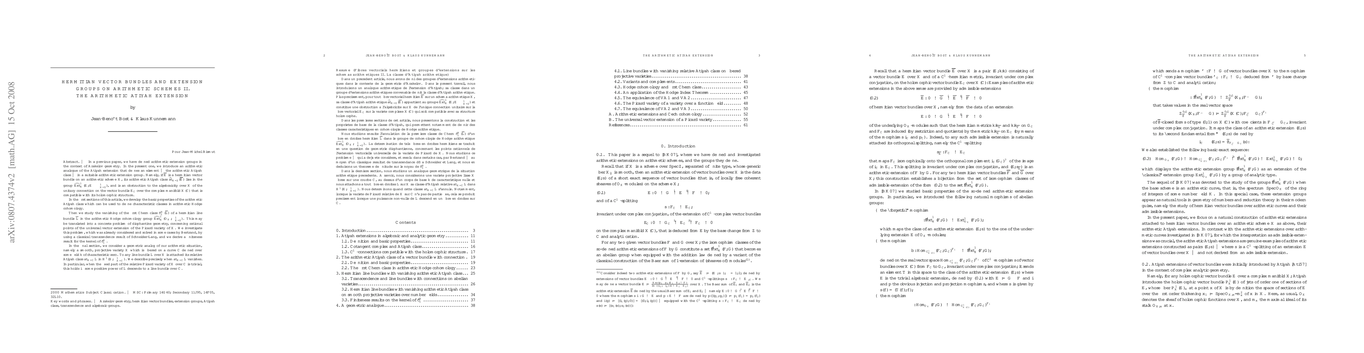 In a previous paper, we have defined arithmetic extension groups in the context of Arakelov geometry. In the present one, we introduce an arithmetic analogue of the Atiyah extension that defines an element -- the arithmetic Atiyah class -- in a suitable arithmetic extension group. If $\overline{E}$ is a hermitian vector bundle on an arithmetic scheme $X$, its arithmetic Atiyah class is an obstruction to the algebraicity of the unitary connection on the vector bundle $E_\C$ over the complex manifold $X(\C)$ that is compatible with its holomorphic structure. We develop basic properties of the arithmetic Atiyah class and study its vanishing in the case of hermitian line bundles. This may be translated into a concrete problem of diophantine geometry, concerning rational points of the universal vector extension of the Picard variety of $X$. We investigate this problem, which was already considered and solved in some cases by Bertrand, by using a classical transcendence result of Schneider-Lang, and we derive a finiteness result. We also consider a geometric analog of our arithmetic situation, namely a smooth, projective variety $X$ which is fibered on a curve $C$ defined over some field $k$ of characteristic zero. To any line bundle $L$ over $X$ is attached its relative Atiyah class ${\rm at}_{X/C}L$. We describe precisely when this class vanishes. In particular, when the fixed part of the relative Picard variety of $X$ over $C$ is trivial, this holds only when the restriction of $L$ to the generic fiber $X_K$ of $X$ over $C$ is a torsion line bundle.
