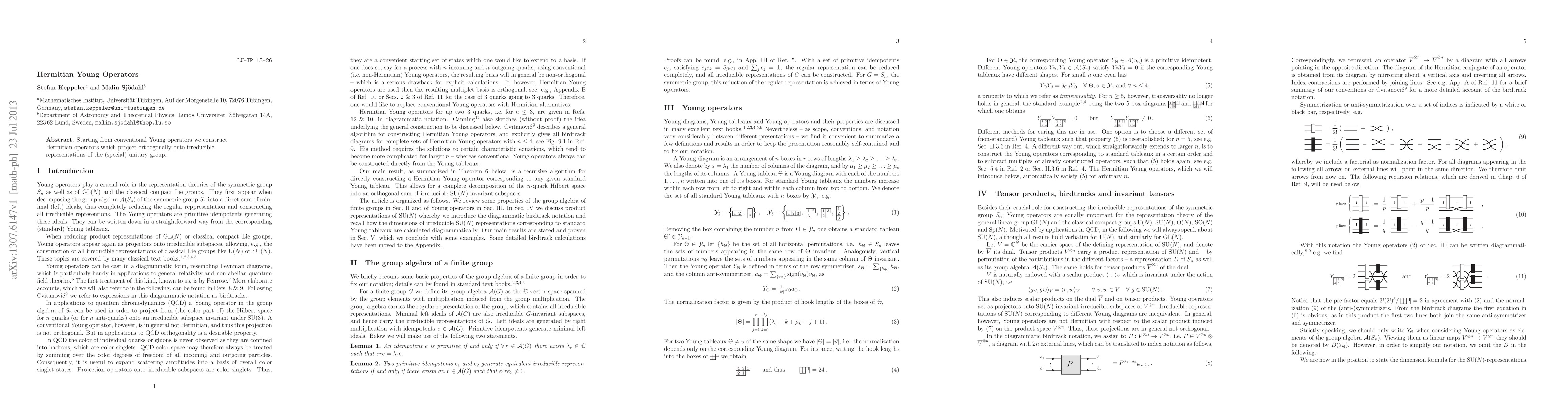 Starting from conventional Young operators we construct Hermitian operators which project orthogonally onto irreducible representations of the (special) unitary group.