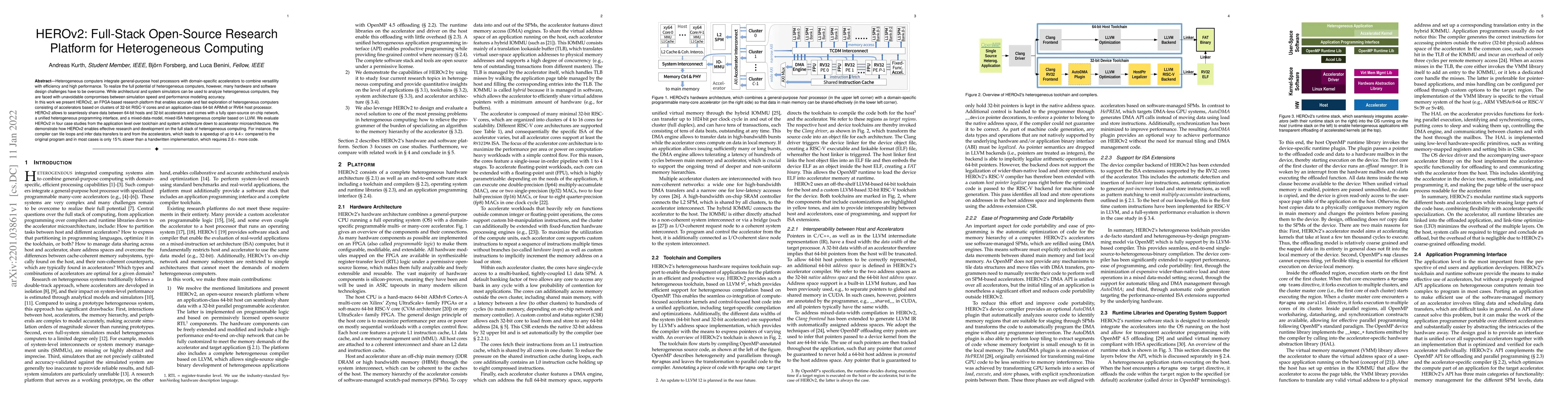 HEROv2 is an open-source FPGA-based platform for exploring heterogeneous computing systems, integrating 32-bit RISC-V accelerators with 64-bit ARMv8 hosts. It facilitates efficient, accurate research across hardware and software layers, demonstrating up to 4.4x speedup in performance compared to original programs.