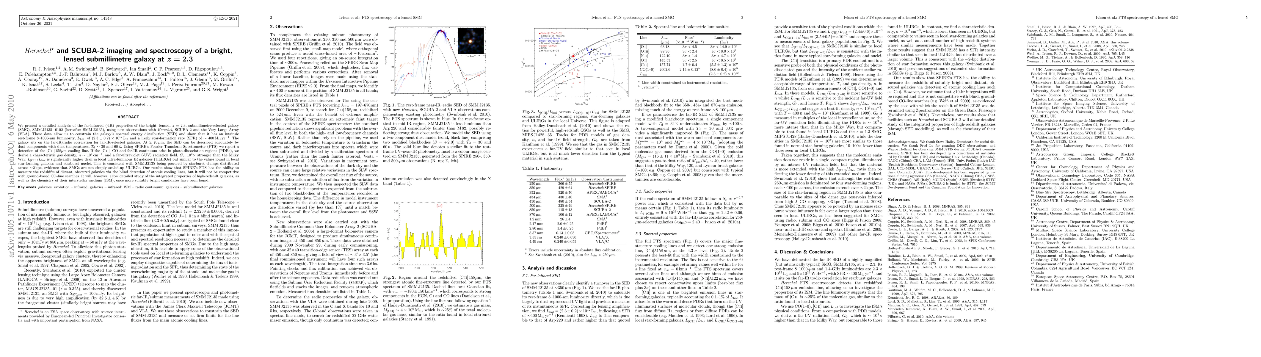 Researchers studied a bright, lensed submillimetre galaxy at z = 2.3, finding it has an intrinsic luminosity of 2.3 x 10^12 L(sun) and a likely star formation rate of ~400 M(sun)/yr.