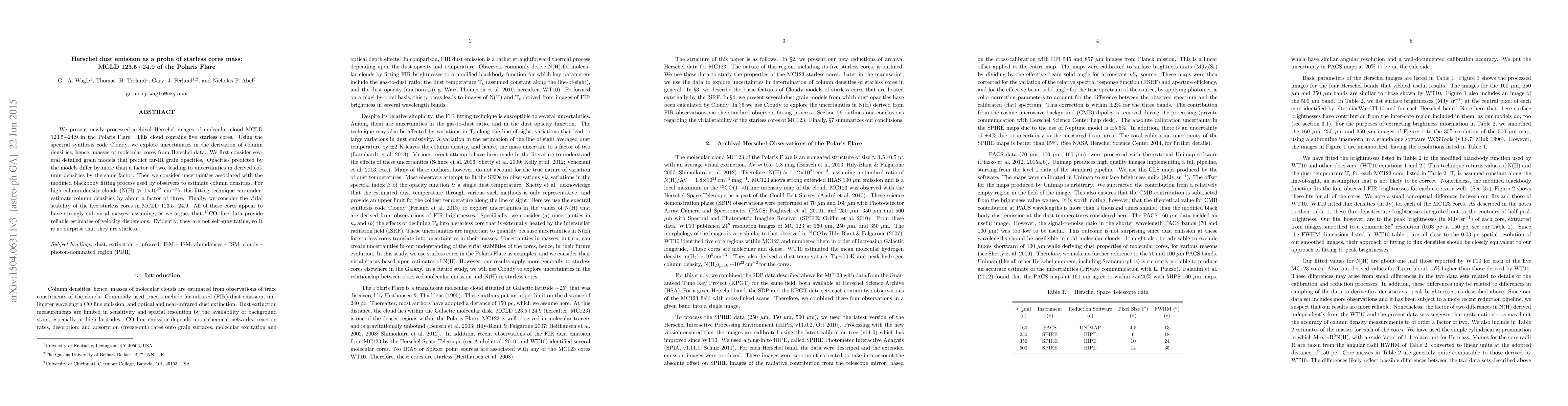 We present newly processed archival Herschel images of molecular cloud MCLD 123.5+24.9 in the Polaris Flare. This cloud contains five starless cores. Using the spectral synthesis code Cloudy, we explore uncertainties in the derivation of column densities, hence, masses of molecular cores from Herschel data. We first consider several detailed grain models that predict far-IR grain opacities. Opacities predicted by the models differ by more than a factor of two, leading to uncertainties in derived column densities by the same factor. Then we consider uncertainties associated with the modified blackbody fitting process used by observers to estimate column densities. For high column density clouds (N(H) $\gg$ 10$^{22}$ cm$^{-2}$), this fitting technique can underestimate column densities by about a factor of three. Finally, we consider the virial stability of the five starless cores in MCLD 123.5+24.9. All of these cores appear to have strongly sub-virial masses, assuming, as we argue, that $^{13}$CO line data provide reliable estimates of velocity dispersions. Evidently, they are not self-gravitating, so it is no surprise that they are starless.