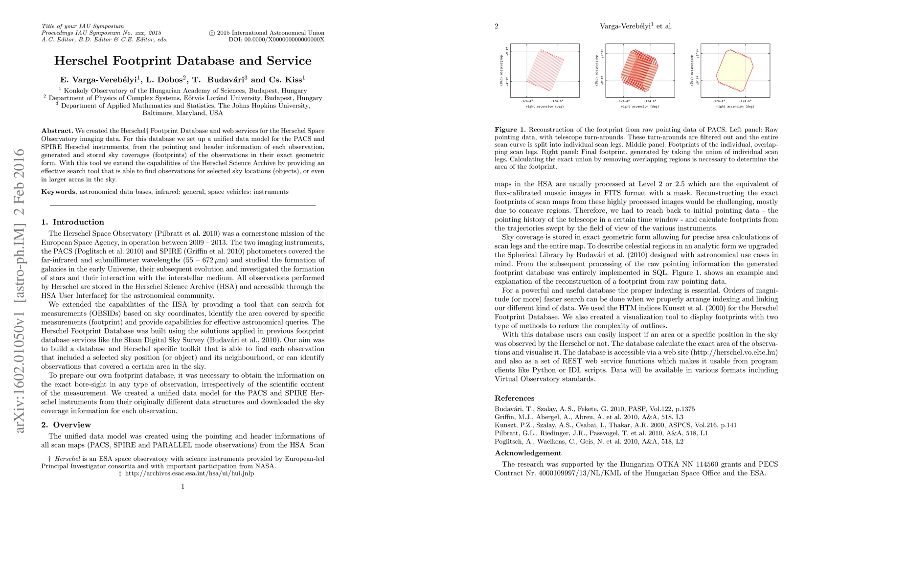 We created the Herschel Footprint Database and web services for the Herschel Space Observatory imaging data. For this database we set up a unified data model for the PACS and SPIRE Herschel instruments, from the pointing and header information of each observation, generated and stored sky coverages (footprints) of the observations in their exact geometric form. With this tool we extend the capabilities of the Herschel Science Archive by providing an effective search tool that is able to find observations for selected sky locations (objects), or even in larger areas in the sky.