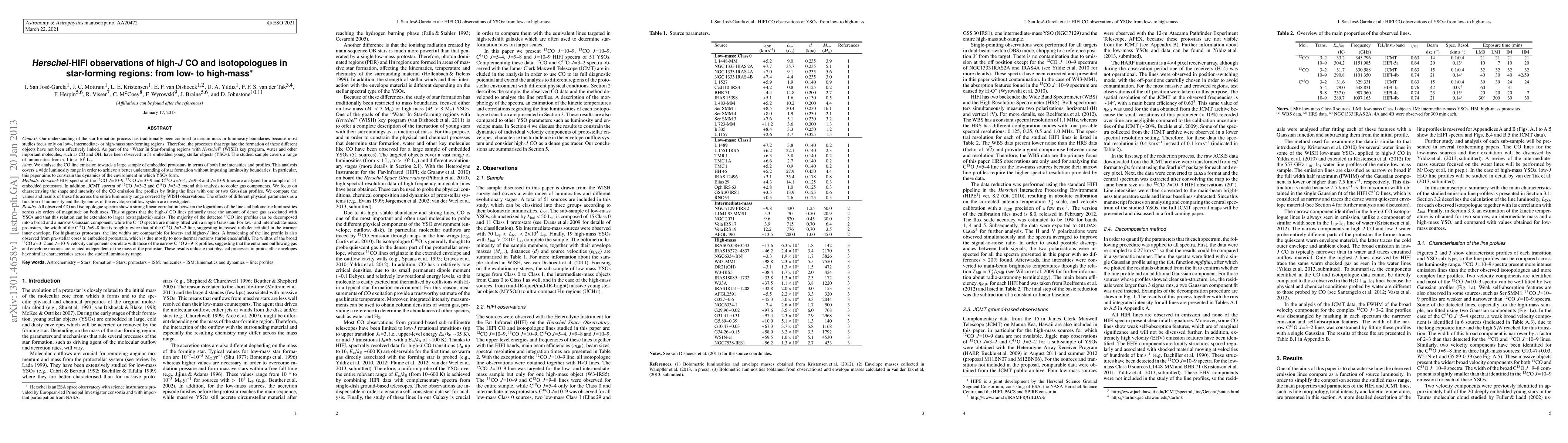 This study uses Herschel-HIFI observations to analyze high-J CO and isotopologue line emissions in 51 young stellar objects, revealing a strong correlation between CO line intensities and bolometric luminosities across a wide range of masses. The findings indicate that high-J CO lines trace dense gas associated with protostars, and that turbulence and infall dominate the broadening of line profiles, suggesting similar physical processes in protostellar envelopes regardless of mass.