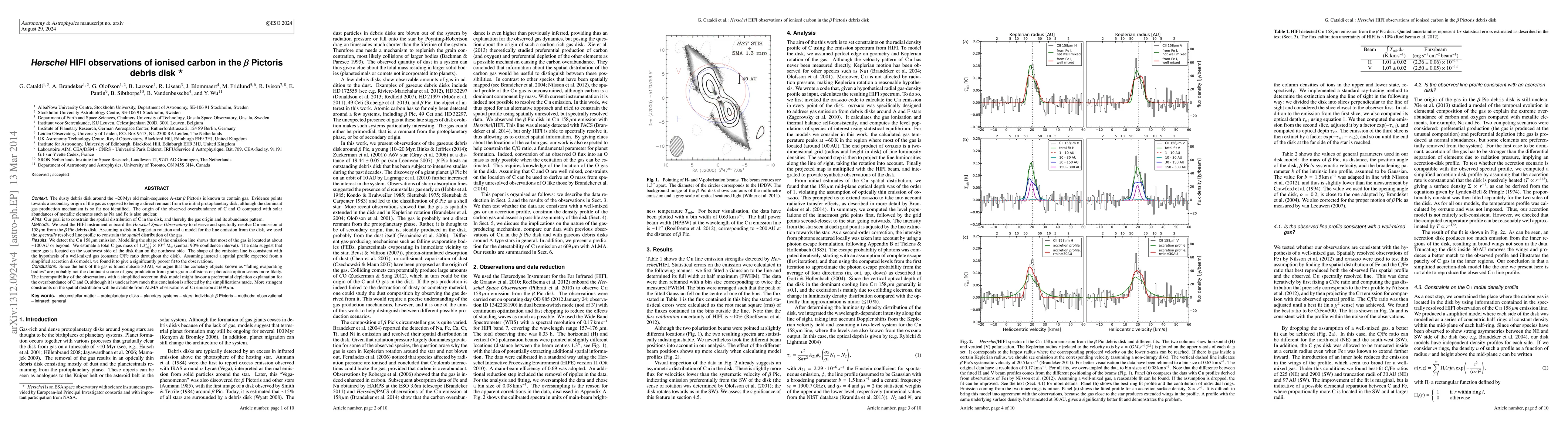 The Herschel HIFI observations of CII emission in the β Pictoris debris disk reveal that most gas is located beyond 100 AU, suggesting grain-grain collisions or photodesorption as the likely gas production mechanisms. The data support a well-mixed gas with a constant C/Fe ratio, challenging simplified accretion disk models.