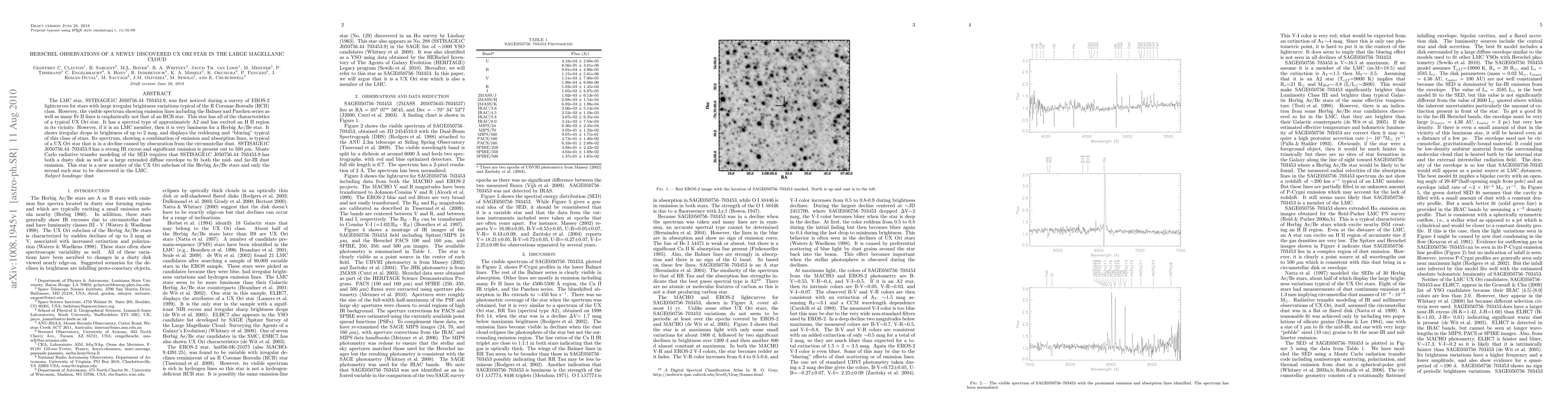 This paper identifies a new UX Ori star, SSTISAGE1C J050756.44-703453.9, in the Large Magellanic Cloud, characterized by irregular brightness variations and emission lines typical of this subclass. The star exhibits a strong infrared excess and requires both a dusty disk and an extended diffuse envelope to explain its spectral energy distribution.