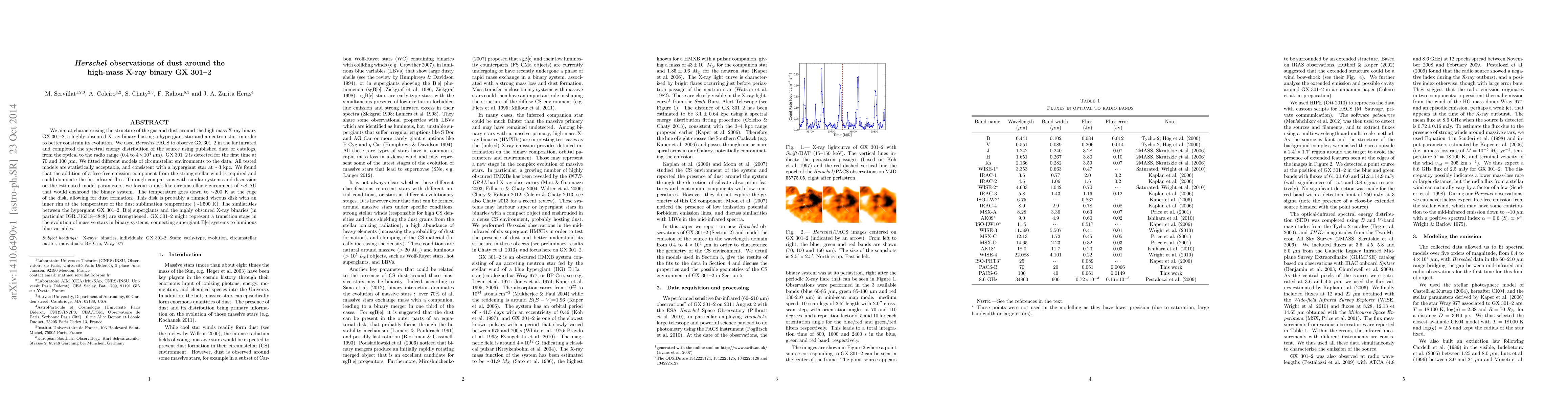 This study uses Herschel PACS observations to characterize the dust and gas around the high-mass X-ray binary GX 301-2, finding a disk-like circumstellar environment that likely enshrouds the binary system. The model suggests a temperature gradient allowing for dust formation, indicating GX 301-2 may be a transitional stage in the evolution of massive binary stars.