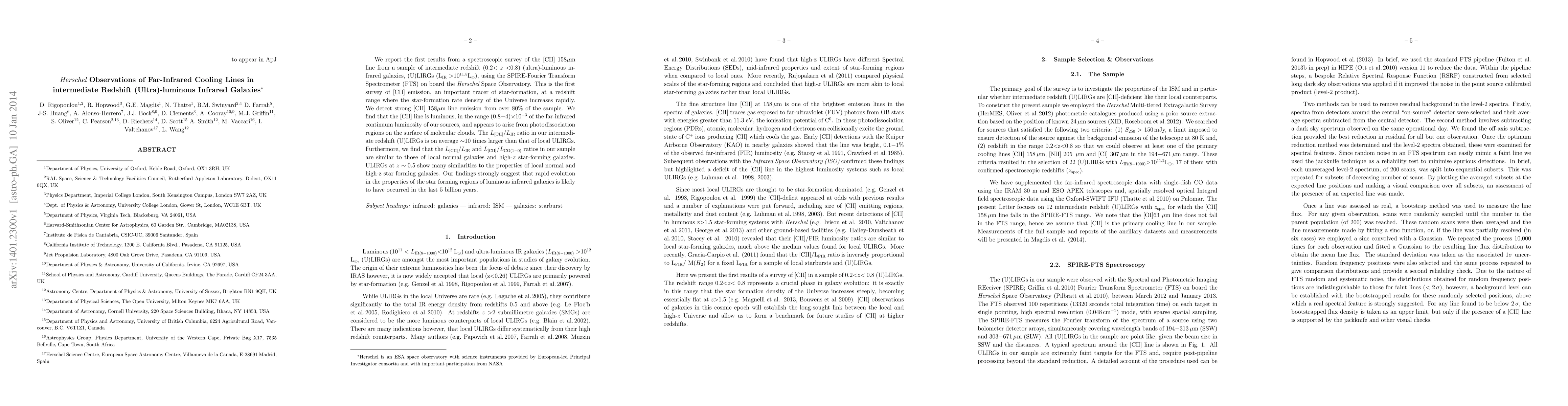 This study reports the first detection of the [CII] 158um line in intermediate redshift (0.2<z<0.8) (ultra)-luminous infrared galaxies (ULIRGs) using Herschel's SPIRE-FTS, revealing strong [CII] emission and suggesting rapid evolution in the star-forming regions of these galaxies over the last 5 billion years. The L[CII]/LIR ratio in these ULIRGs is significantly larger than in local ULIRGs, aligning with properties of local normal galaxies and high-z star-forming galaxies.