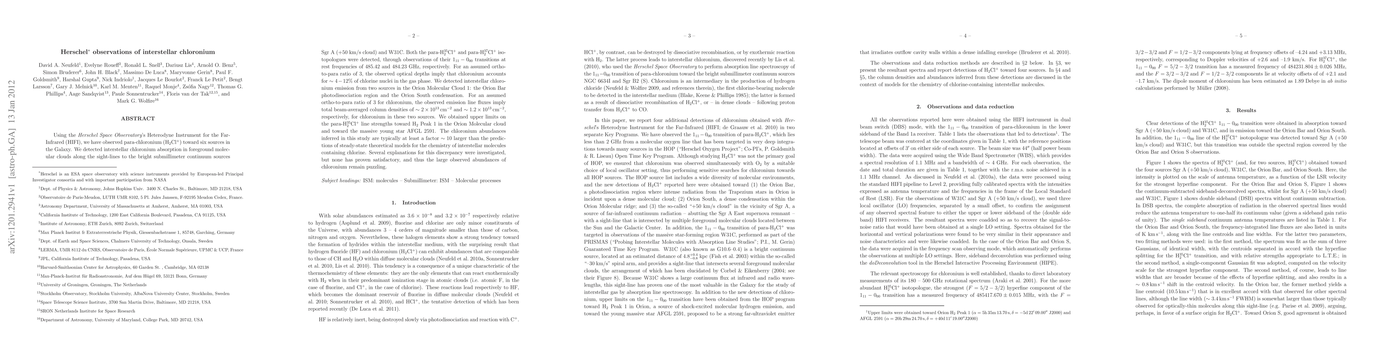 Astronomers detected chloronium in interstellar space using the Herschel Space Observatory, finding it in six sources across the galaxy, with estimated column densities of up to 2E+13 cm^-2.