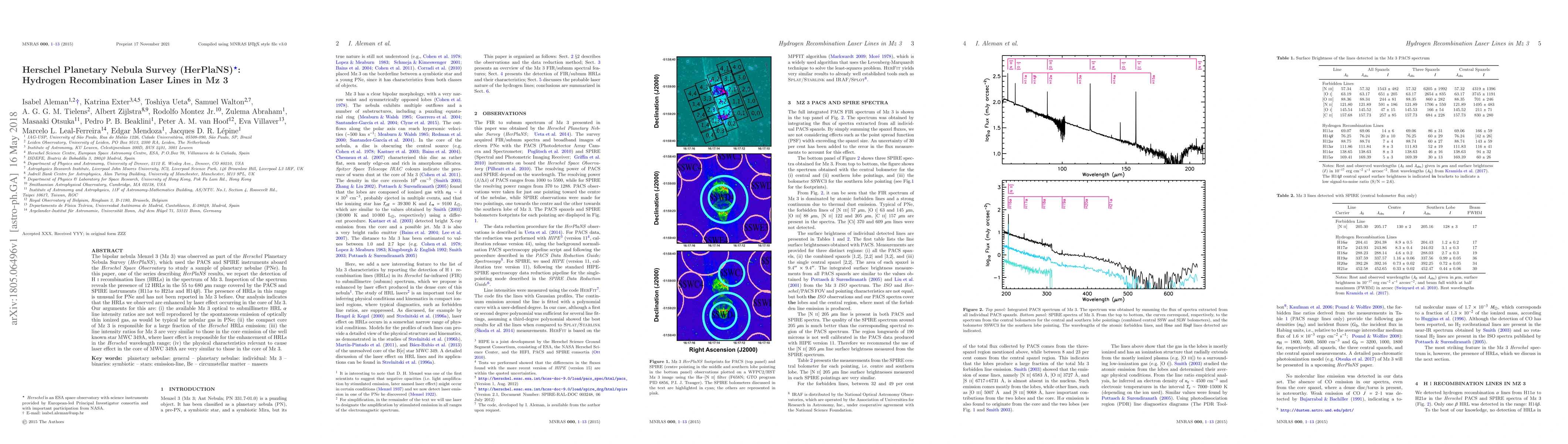 The Herschel Planetary Nebula Survey detected 12 H I recombination lines in the bipolar nebula Mz 3, an unusual observation for planetary nebulae. The enhanced HRLs are attributed to a laser effect in the nebula's core, supported by similar line intensity ratios and physical characteristics to those in the laser-affected core of MWC 349A.