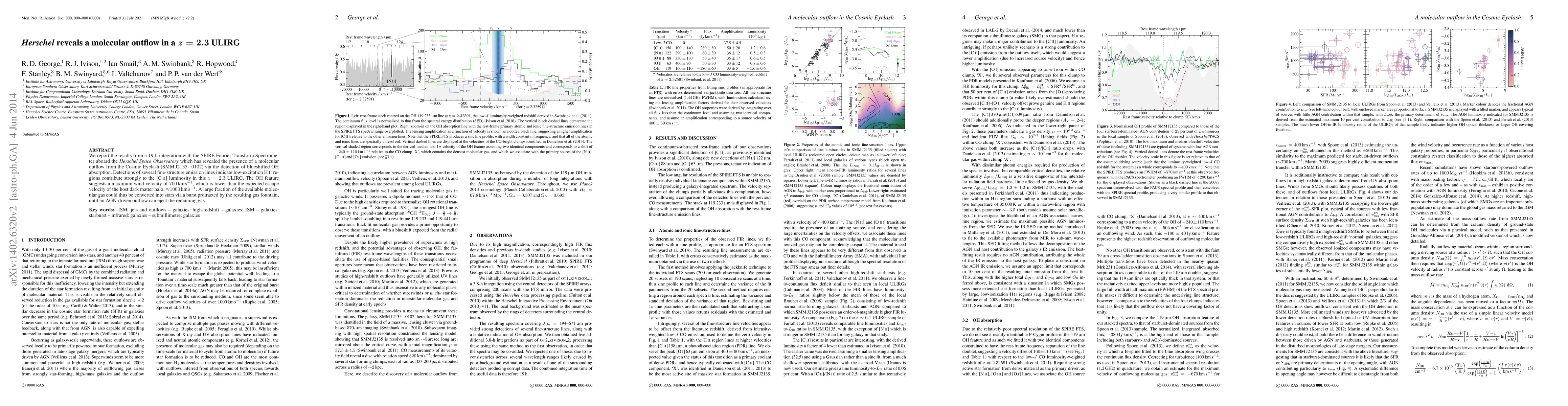 We report the results from a 19-h integration with the SPIRE Fourier Transform Spectrometer aboard the Herschel Space Observatory which has revealed the presence of a molecular outflow from the Cosmic Eyelash (SMM J2135-0102) via the detection of blueshifted OH absorption. Detections of several fine-structure emission lines indicate low-excitation HII regions contribute strongly to the [CII] luminosity in this z = 2.3 ULIRG. The OH feature suggests a maximum wind velocity of 700 km/s, which is lower than the expected escape velocity of the host dark matter halo, ~1000 km/s. A large fraction of the available molecular gas could thus be converted into stars via a burst protracted by the resulting gas fountain, until an AGN-driven outflow can eject the remaining gas.
