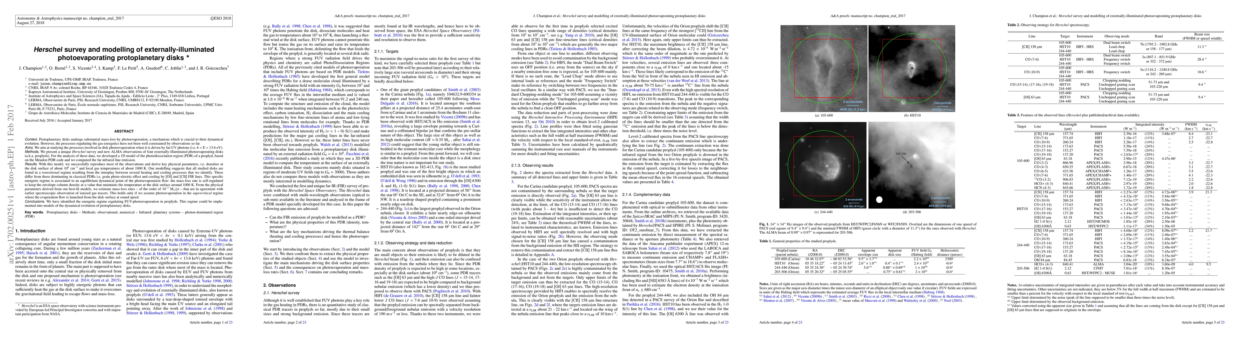 This paper presents a Herschel survey and new ALMA observations of four externally-illuminated photoevaporating protoplanetary disks, developing a 1D model to analyze the photodissociation region. The study finds that the disks are in a transitional energetic regime, with mass-loss rates of about $10^{-7}$ $\mathrm{M}_\odot$/yr, regulated by heating and cooling processes different from classical PDRs.