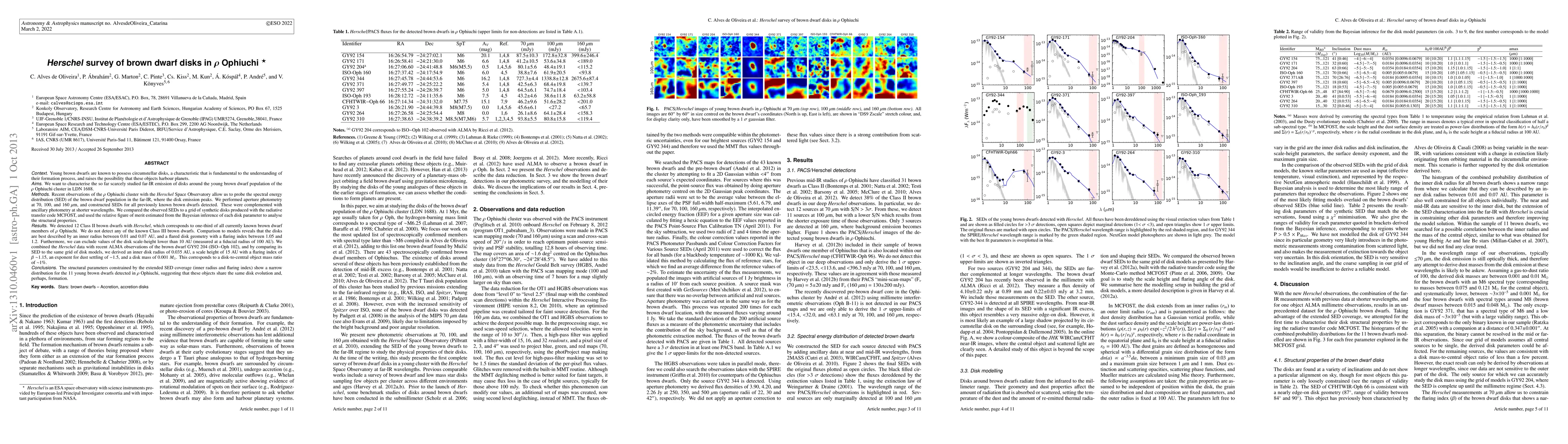 The Herschel survey of brown dwarf disks in Rho Ophiuchi reveals that 12 Class II brown dwarfs exhibit disk emission, while none of the Class III brown dwarfs do. The detected disks have inner radii between 0.01 and 0.07 AU and a flared geometry, with scale heights above 10 AU. Detailed modeling of GY92 204 suggests a disk-to-central object mass ratio of ~1%.