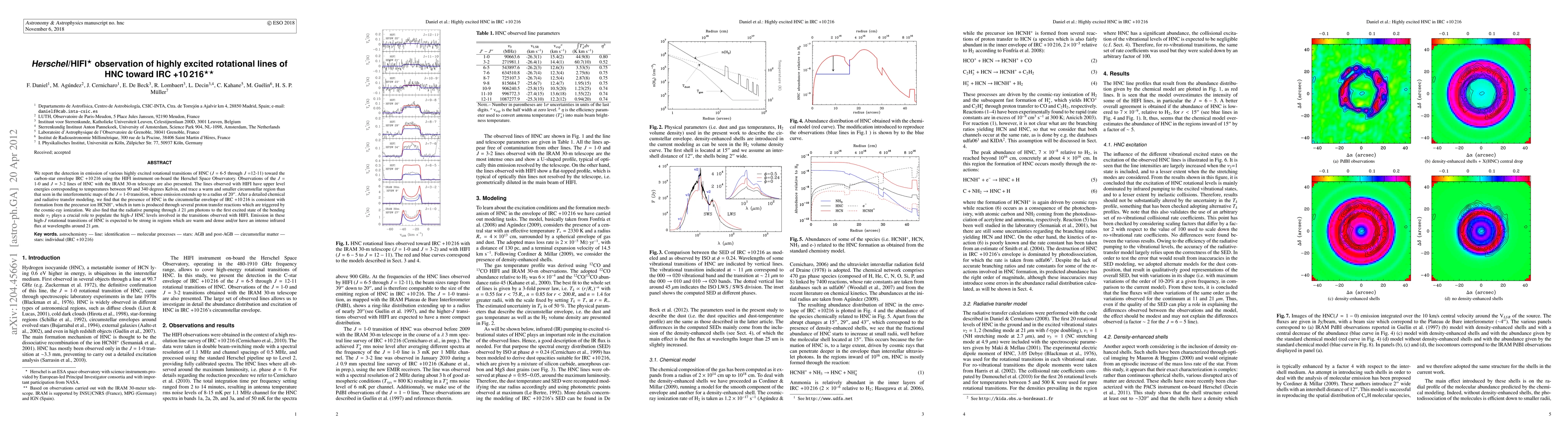 We report the detection in emission of various highly excited rotational transitions of HNC (J = 6-5 through J =12-11) toward the carbon-star envelope IRC +10 216 using the HIFI instrument on-board the Herschel Space Observatory. Observations of the J = 1-0 and J = 3-2 lines of HNC with the IRAM 30-m telescope are also presented. The lines observed with HIFI have upper level energies corresponding to temperatures between 90 and 340 degrees Kelvin, and trace a warm and smaller circumstellar region than that seen in the interferometric maps of the J = 1-0 transition, whose emission extends up to a radius of 20". After a detailed chemical and radiative transfer modeling, we find that the presence of HNC in the circumstellar envelope of IRC +10 216 is consistent with formation from the precursor ion HCNH+, which in turn is produced through several proton transfer reactions which are triggered by the cosmic-ray ionization. We also find that the radiative pumping through 21 um photons to the first excited state of the bending mode v2 plays a crucial role to populate the high-J HNC levels involved in the transitions observed with HIFI. Emission in these high-J rotational transitions of HNC is expected to be strong in regions which are warm and dense and/or have an intense infrared flux at wavelengths around 21 um.