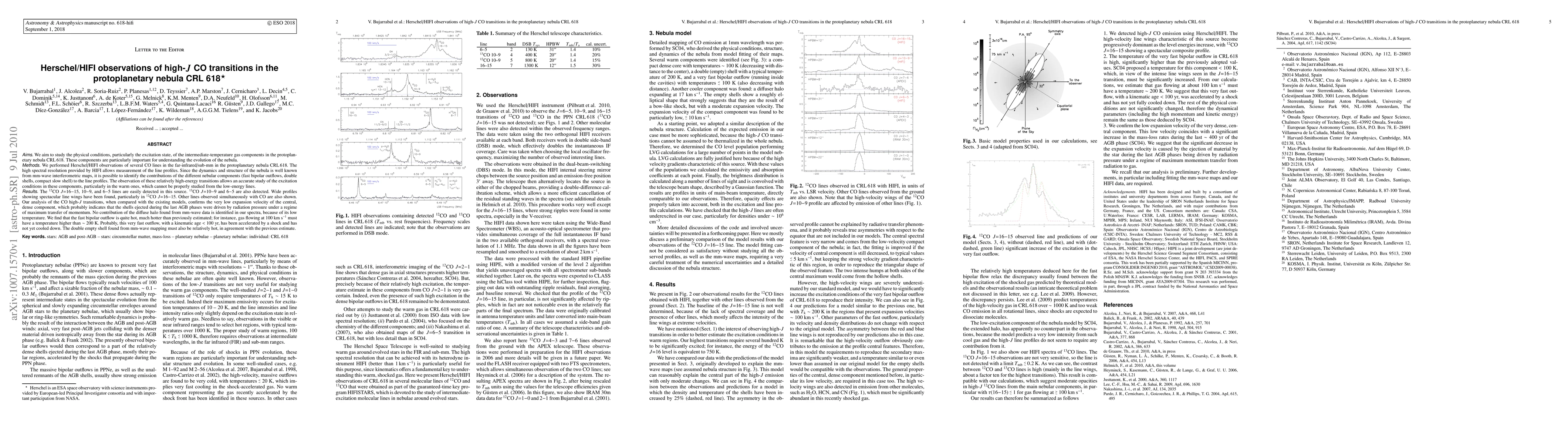 Astronomers studied CO transitions in the protoplanetary nebula CRL618 using Herschel/HIFI observations, revealing that fast bipolar outflows are much hotter than previously thought and may have been accelerated by a shock.