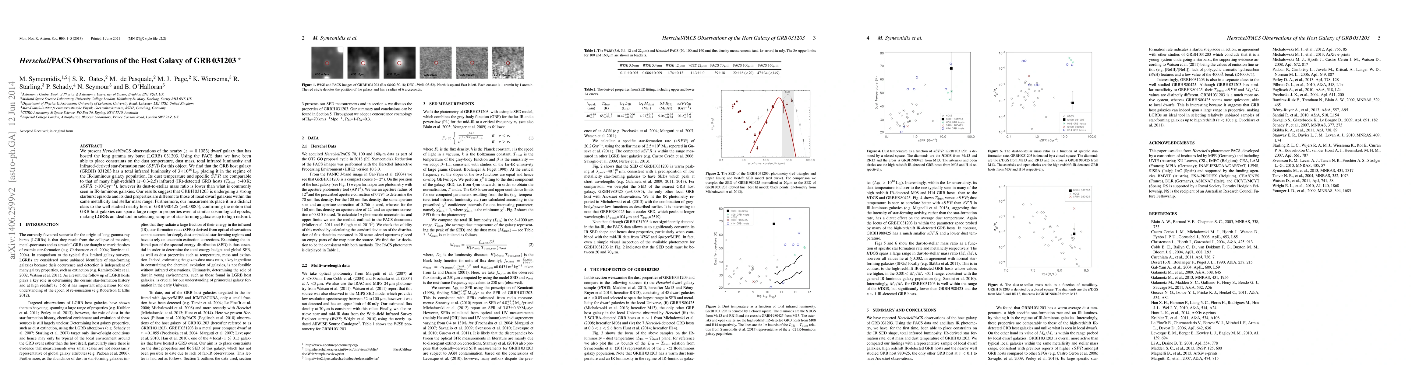 This paper uses Herschel/PACS observations to study the host galaxy of GRB 031203, finding it has a high total infrared luminosity indicative of an IR-luminous galaxy. The galaxy's dust properties and star-formation rate suggest it is undergoing a strong starburst, differing from typical local dwarf galaxies and highlighting the diversity of GRB host galaxies.