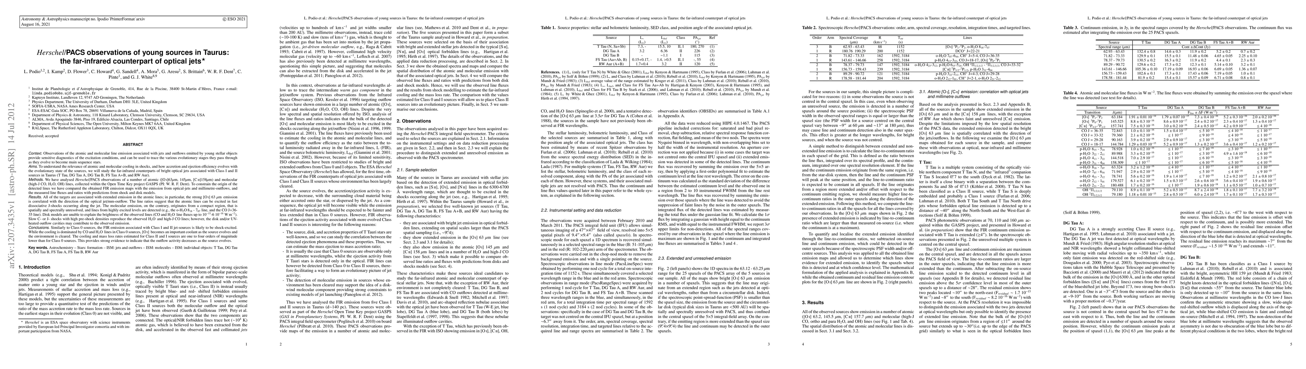 Observations of the atomic and molecular line emission associated with jets and outflows emitted by young stellar objects can be used to trace the various evolutionary stages they pass through as they evolve to become main sequence stars. To understand the relevance of atomic and molecular cooling in shocks, and how accretion and ejection efficiency evolves with the source evolutionary state, we will study the far-infrared counterparts of bright optical jets associated with Class I and II sources in Taurus (T Tau, DG Tau A, DG Tau B, FS Tau A+B, and RW Aur). We have analysed Herschel/PACS observations of a number of atomic ([OI]63um, 145um, [CII]158um) and molecular (high-J CO, H2O, OH) lines, collected within the OTKP GASPS. To constrain the origin of the detected lines we have compared the FIR emission maps with the emission from optical-jets and millimetre-outflows, and the line fluxes and ratios with predictions from shock and disk models. All of the targets are associated with extended emission in the atomic lines correlated with the direction of the optical jet/mm-outflow. The atomic lines can be excited in fast dissociative J-shocks. The molecular emission, on the contrary, originates from a compact region, that is spatially and spectrally unresolved. Slow C- or J- shocks with high pre-shock densities reproduce the observed H2O and high-J CO lines; however, the disk and/or UV-heated outflow cavities may contribute to the emission. While the cooling is dominated by CO and H2O lines in Class 0 sources, [OI] becomes an important coolant as the source evolves and the environment is cleared. The cooling and mass loss rates estimated for Class II and I sources are one to four orders of magnitude lower than for Class 0 sources. This provides strong evidence to indicate that the outflow activity decreases as the source evolves.