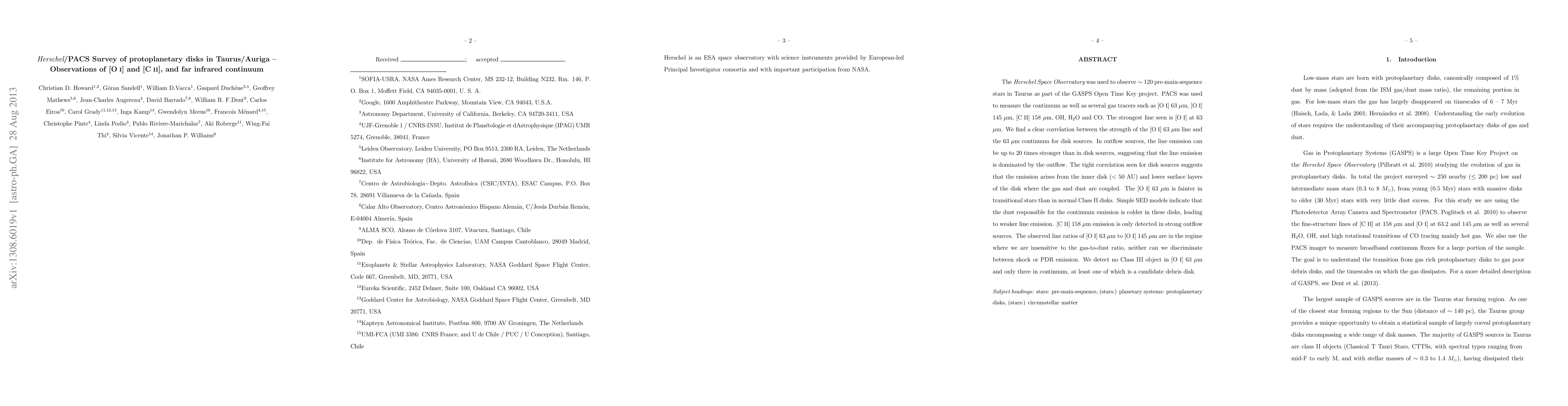 The Herschel Space Observatory observed ~120 pre-main-sequence stars in Taurus using PACS to measure gas tracers and continuum emission. The [OI] 63 μm line correlates strongly with the 63 μm continuum in disk sources, suggesting inner disk origin, while outflow sources show much stronger line emission.