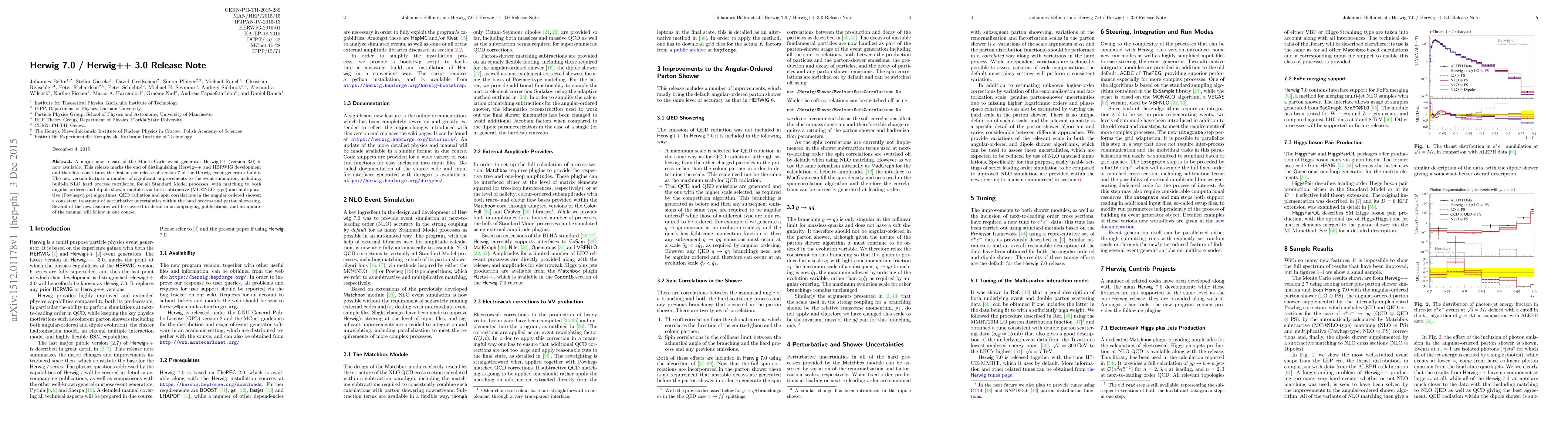 Herwig++ 3.0 (Herwig 7.0) introduces significant improvements to event simulation, including NLO hard process calculations, QED radiation, and consistent treatment of perturbative uncertainties. The release unifies Herwig and Herwig++ development.