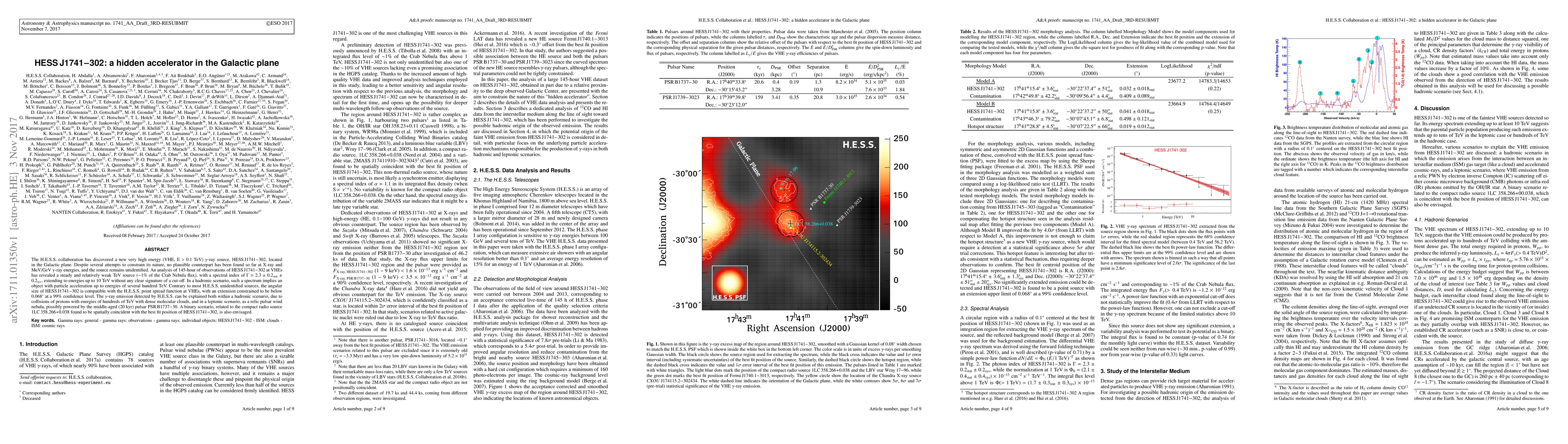 The H.E.S.S. collaboration used 145 hours of observations to analyze the very high energy (VHE, E > 0.1 TeV) gamma-ray source HESS J1741-302. They applied spectral and morphological analyses, utilizing the Sherpa fitting package and comparing models using a log-likelihood ratio test.