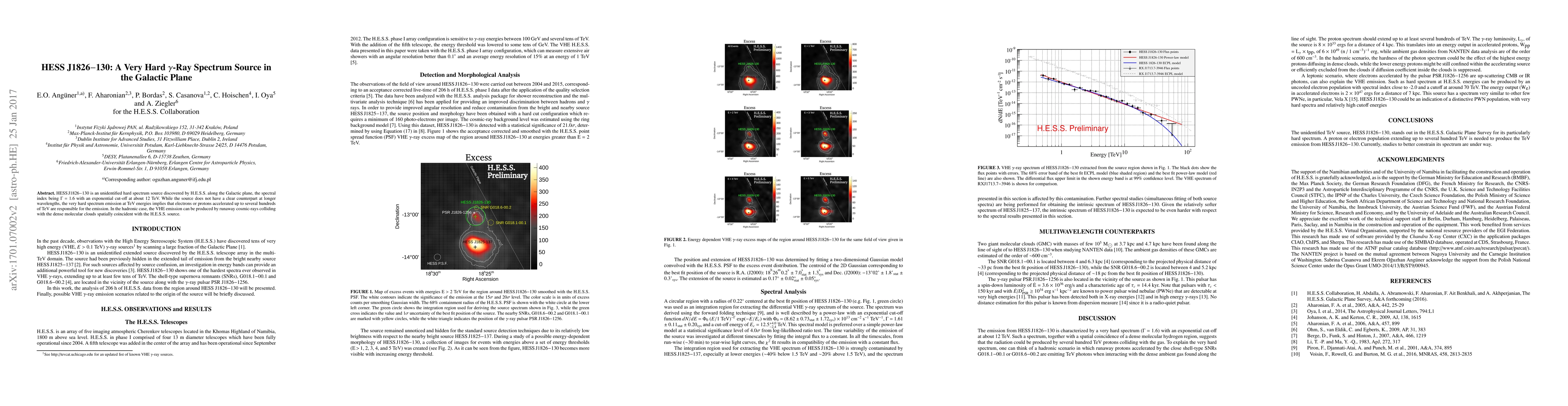 HESS J1826$-$130 is a hard spectrum $\gamma$-ray source detected by the H.E.S.S. telescope with a spectral index of $\Gamma$ = 1.6, suggesting electrons or protons accelerated to hundreds of TeV are responsible for its emission. The source's location near dense molecular clouds hints at possible interactions with runaway cosmic rays.