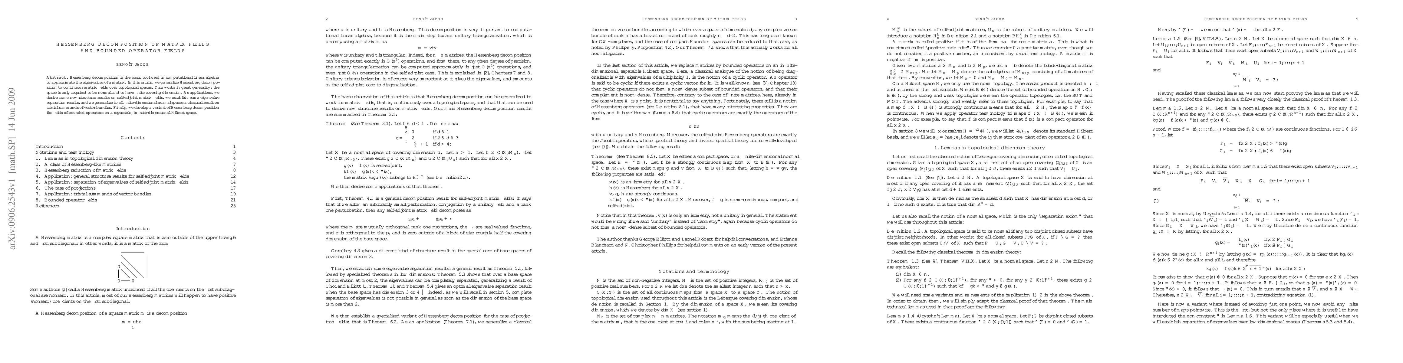 This paper generalizes Hessenberg decomposition to continuous matrix fields over normal topological spaces, deriving new structure results and eigenvalue separation. It also extends the decomposition to bounded operator fields in separable infinite-dimensional Hilbert spaces.