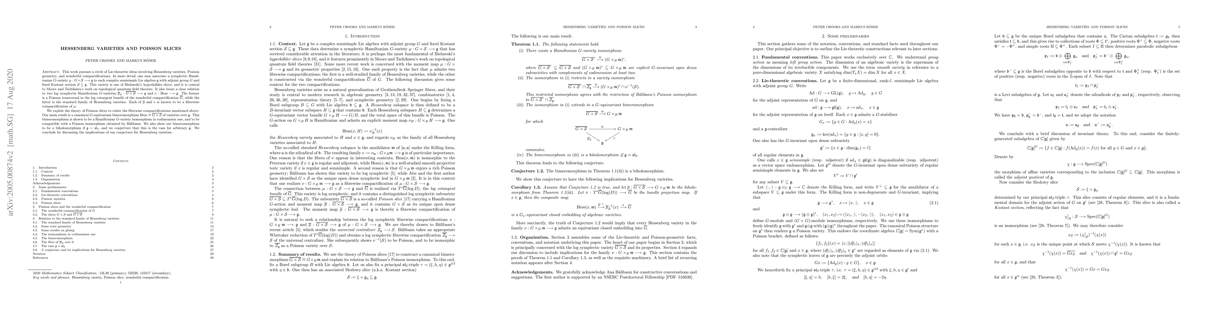 This work pursues a circle of Lie-theoretic ideas involving Hessenberg varieties, Poisson geometry, and wonderful compactifications. In more detail, one may associate a symplectic Hamiltonian $G$-variety $\mu:G\times\mathcal{S}\longrightarrow\mathfrak{g}$ to each complex semisimple Lie algebra $\mathfrak{g}$ with adjoint group $G$ and fixed Kostant section $\mathcal{S}\subseteq\mathfrak{g}$. This variety is one of Bielawski's hyperk\"ahler slices, and it is central to Moore and Tachikawa's work on topological quantum field theories. It also bears a close relation to two log symplectic Hamiltonian $G$-varieties $\overline{\mu}_{\mathcal{S}}:\overline{G\times\mathcal{S}}\longrightarrow\mathfrak{g}$ and $\nu:\mathrm{Hess}\longrightarrow\mathfrak{g}$. The former is a Poisson transversal in the log cotangent bundle of the wonderful compactification $\overline{G}$, while the latter is the standard family of Hessenberg varieties. Each of $\overline{\mu}$ and $\nu$ is known to be a fibrewise compactification of $\mu$. We exploit the theory of Poisson slices to relate the fibrewise compactifications mentioned above. Our main result is a canonical $G$-equivariant bimeromorphism $\mathrm{Hess}\cong\overline{G\times\mathcal{S}}$ of varieties over $\mathfrak{g}$. This bimeromorphism is shown to be a Hamiltonian $G$-variety isomorphism in codimension one, and to be compatible with a Poisson isomorphism obtained by B\u{a}libanu. We also show our bimeromorphism to be a biholomorphism if $\mathfrak{g}=\mathfrak{sl}_2$, and we conjecture that this is the case for arbitrary $\mathfrak{g}$. We conclude by discussing the implications of our conjecture for Hessenberg varieties.