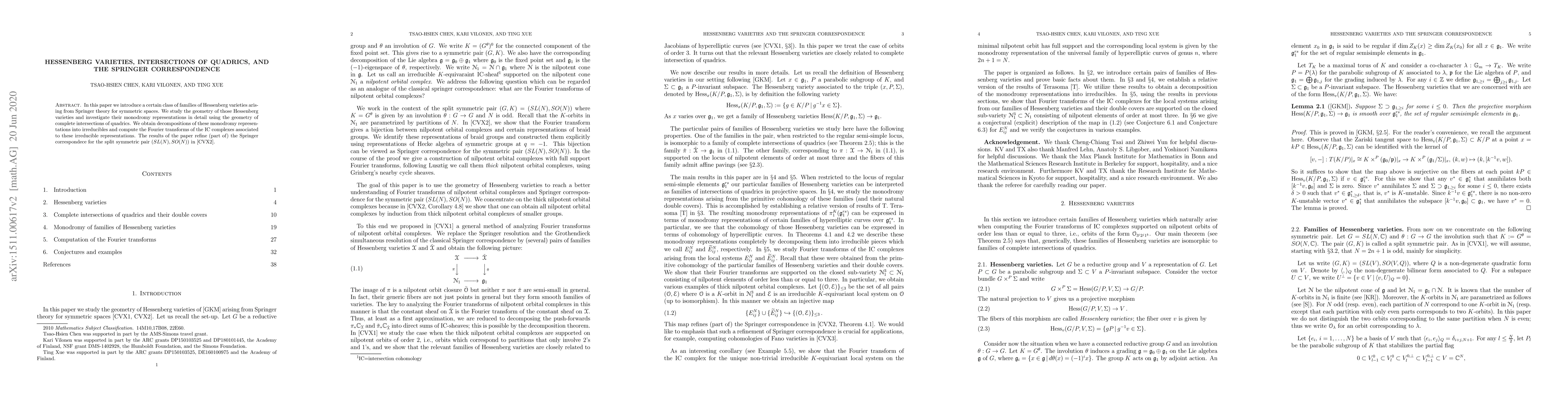 This paper explores the geometry of Hessenberg varieties derived from Springer theory for symmetric spaces, focusing on their intersections with quadrics. It decomposes their monodromy representations and computes Fourier transforms of associated IC complexes, refining part of the Springer correspondence for the split symmetric pair (SL(N), SO(N)).