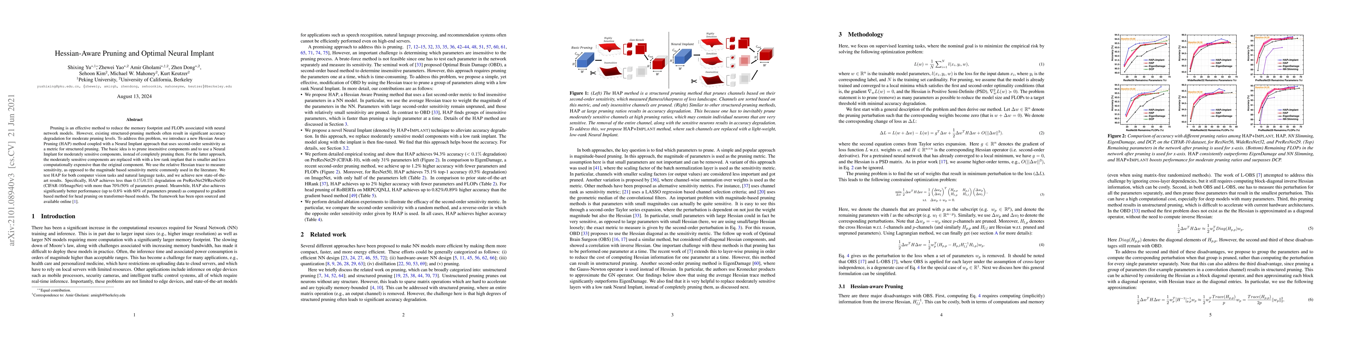 The paper introduces Hessian Aware Pruning (HAP), a novel method for neural network pruning that uses second-order sensitivity to selectively prune insensitive components while implanting low-rank approximations for moderately sensitive ones, achieving state-of-the-art results with minimal accuracy loss on both vision and language tasks.