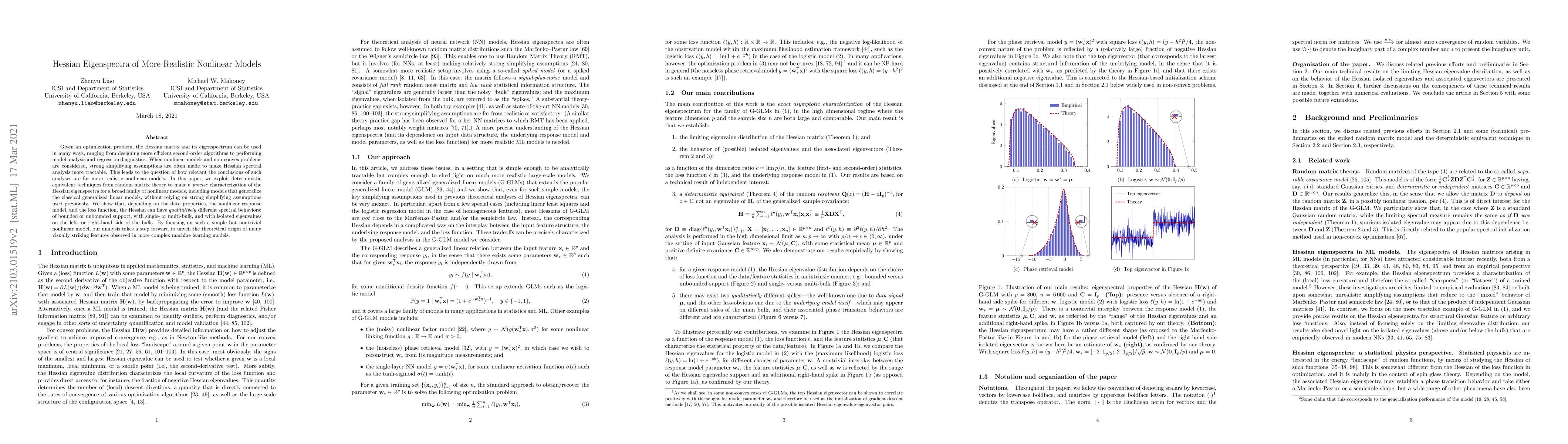 This paper uses deterministic equivalent techniques from random matrix theory to precisely characterize the Hessian eigenspectra for a wide range of nonlinear models, revealing diverse spectral behaviors influenced by data properties, response models, and loss functions. The findings highlight the theoretical origins of visually striking features in complex machine learning models.
