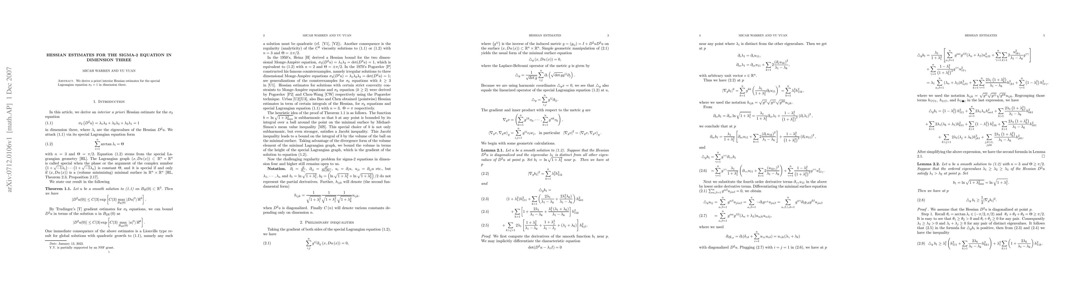 Summary: This paper establishes interior Hessian estimates for the special Lagrangian equation $\sigma_{2}=1$ in three dimensions, providing valuable insights into the geometric properties of the solutions. These estimates are crucial for understanding the behavior of the solutions' curvatures.