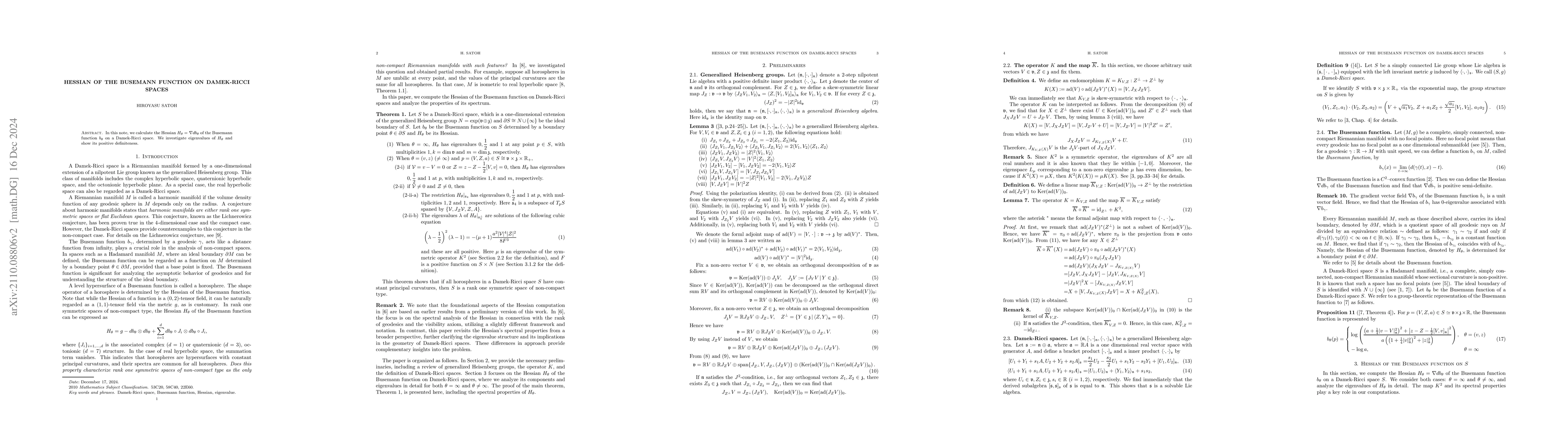 Summary: This paper calculates the Hessian of the Busemann function on Damek-Ricci spaces and demonstrates its positive definiteness, contributing to the understanding of the geometric properties of these spaces.