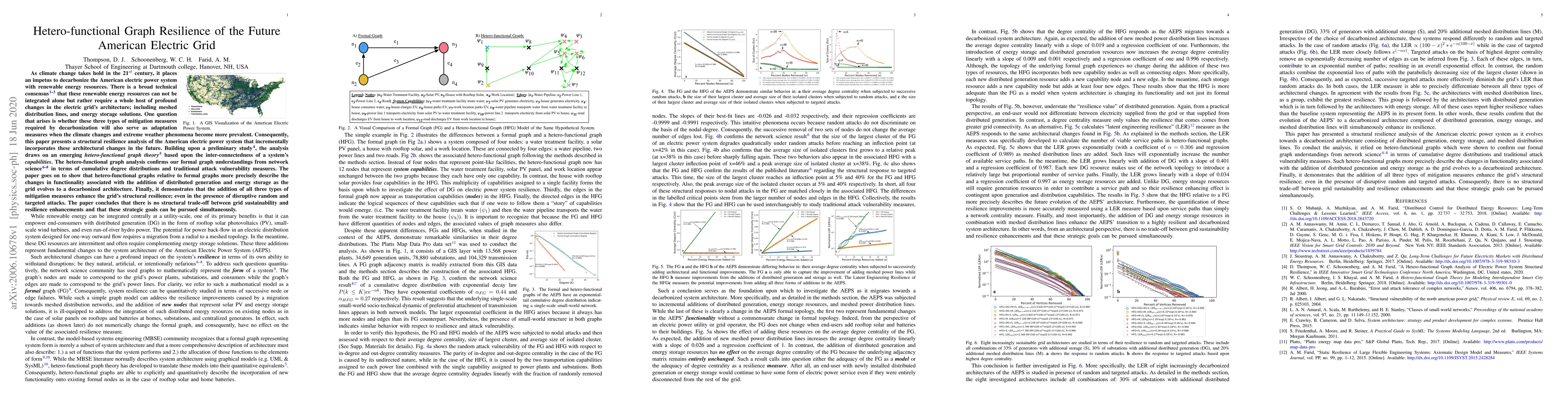As climate change takes hold in the 21st century, it places an impetus to decarbonize the American electric power system with renewable energy resources. This paper presents a structural resilience analysis of the American electric power system that incrementally incorporates architectural changes including meshed distribution lines, distributed generation, and energy storage solutions. A hetero-functional graph analysis confirms our formal graph understandings from network science in terms of cumulative degree distributions and traditional attack vulnerability measures. Additionally, The paper shows that hetero-functional graphs more precisely describe the changes in functionality associated with the addition of distributed generation and energy storage. Finally, it demonstrates that the addition of all three types of mitigation measures enhance the grid's structural resilience; even in the presence of disruptive attacks. The paper concludes that there is no structural trade-off between grid sustainability and resilience.