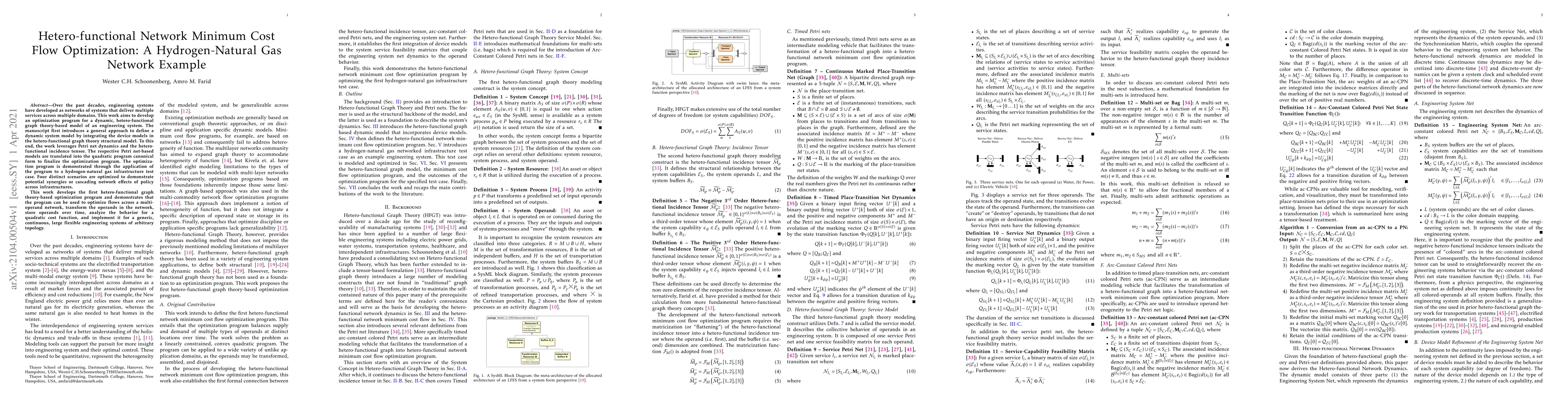 This paper introduces a novel optimization program for dynamic, hetero-functional network systems, exemplified by a hydrogen-natural gas network, using graph theory and Petri net dynamics. The program is shown to effectively optimize flows, transformations, and storage across multi-operand networks.