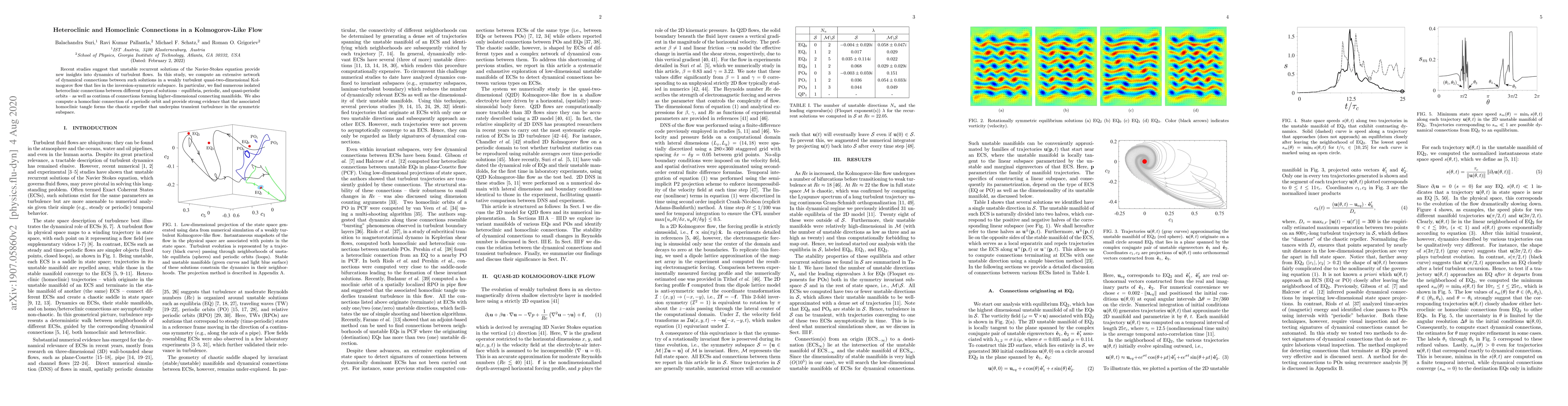 Recent studies suggest that unstable recurrent solutions of the Navier-Stokes equation provide new insights into dynamics of turbulent flows. In this study, we compute an extensive network of dynamical connections between such solutions in a weakly turbulent quasi-two-dimensional Kolmogorov flow that lies in the inversion-symmetric subspace. In particular, we find numerous isolated heteroclinic connections between different types of solutions -- equilibria, periodic, and quasi-periodic orbits -- as well as continua of connections forming higher-dimensional connecting manifolds. We also compute a homoclinic connection of a periodic orbit and provide strong evidence that the associated homoclinic tangle forms the chaotic repeller that underpins transient turbulence in the symmetric subspace.