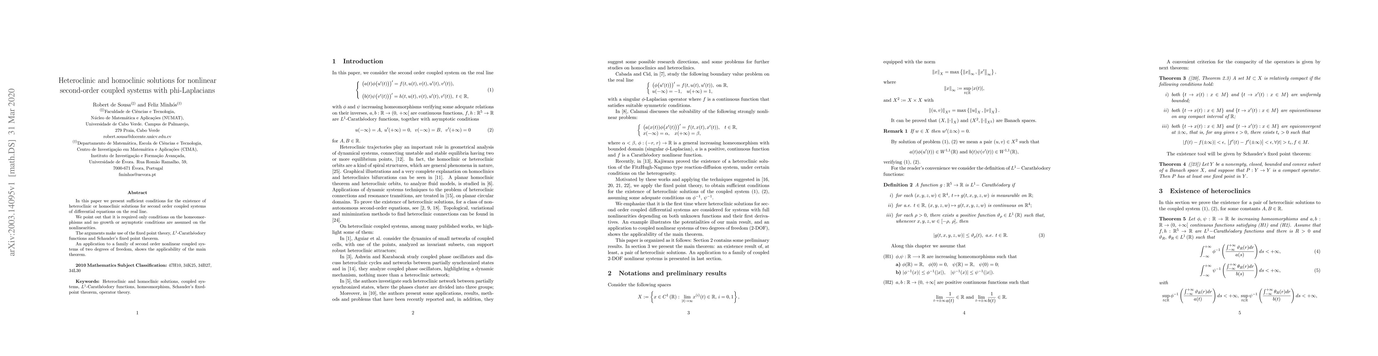 This paper establishes sufficient conditions for the existence of heteroclinic or homoclinic solutions in nonlinear second-order coupled systems with phi-Laplacians, relying on fixed point theory and L^1-Carathéodory functions, without requiring growth or asymptotic conditions on the nonlinearities. The methodology is demonstrated through an application to a specific system of two degrees of freedom.