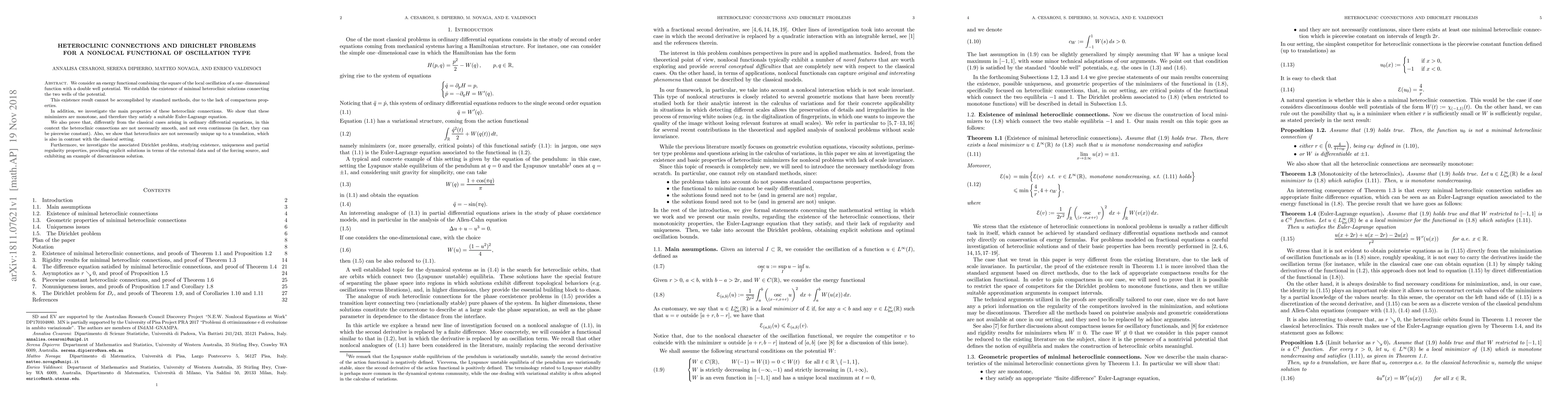 We consider an energy functional combining the square of the local oscillation of a one--dimensional function with a double well potential. We establish the existence of minimal heteroclinic solutions connecting the two wells of the potential. This existence result cannot be accomplished by standard methods, due to the lack of compactness properties. In addition, we investigate the main properties of these heteroclinic connections. We show that these minimizers are monotone, and therefore they satisfy a suitable Euler-Lagrange equation. We also prove that, differently from the classical cases arising in ordinary differential equations, in this context the heteroclinic connections are not necessarily smooth, and not even continuous (in fact, they can be piecewise constant). Also, we show that heteroclinics are not necessarily unique up to a translation, which is also in contrast with the classical setting. Furthermore, we investigate the associated Dirichlet problem, studying existence, uniqueness and partial regularity properties, providing explicit solutions in terms of the external data and of the forcing source, and exhibiting an example of discontinuous solution.
