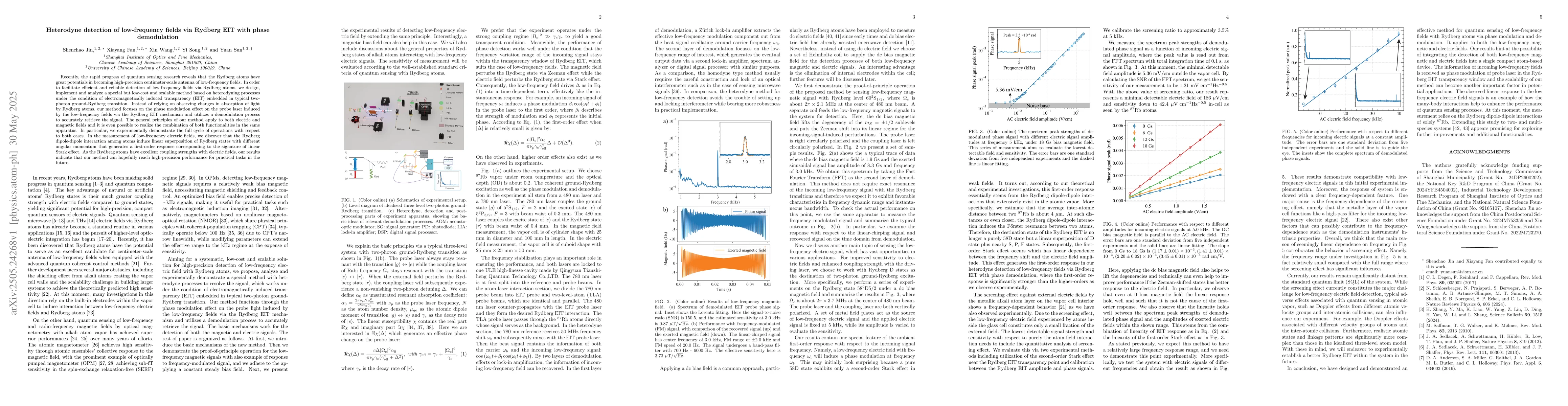 The paper presents a novel heterodyne detection technique for low-frequency fields using Rydberg EIT with phase demodulation, focusing on phase modulation effects rather than absorption changes, and demonstrating its applicability to both electric and magnetic fields.